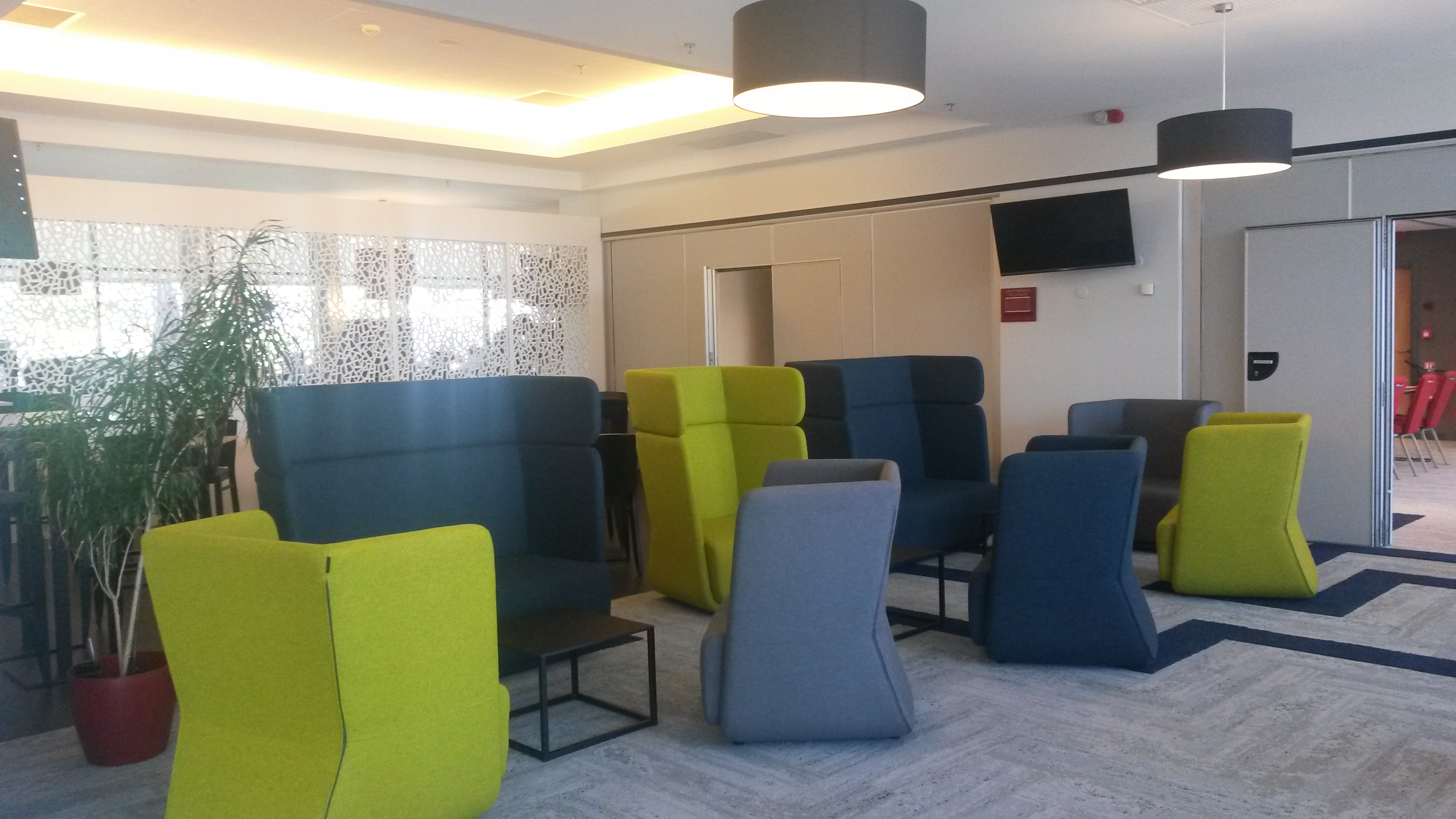 Projet de modernisation de l'ensemble du lobby. Nouvelle implantation, choix des couleurs, remplacement de la moquettes existante, choix de mobilier et de luminaires.