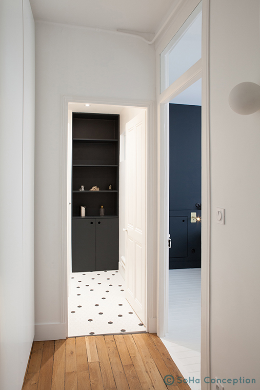 Le charme de l’ancien, avec une note de modernité. La base : Un très bel appartement de type haussmannien en plein coeur d’Annecy. 180m2 de grandes pièces aux hauts plafonds moulurés et parquets anciens mais une organisation qui ne convient pas parfaitement aux nouveaux acheteurs de ce petit bijou. La demande : conserver 4 chambres tout en créant une deuxième salle de bain et une buanderie indépendante et repenser l’espace global pour répondre aux besoins d’une famille de 5 personnes. Sans oublier la déco!