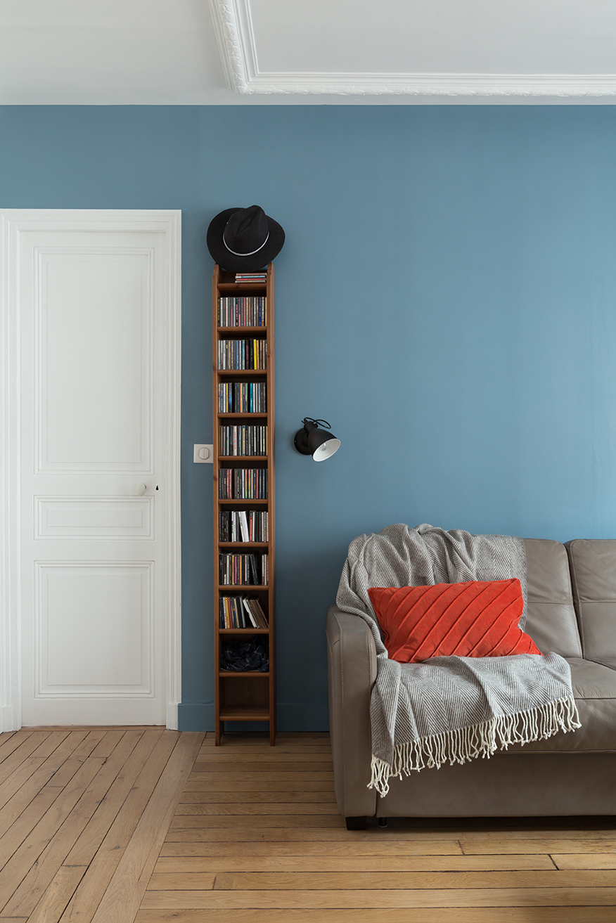 Rénovation d'un appartement de 50 m2 à Paris. L'objectif était de mettre en valeur les atouts charmes de l'appartement : parquet, moulures, cheminées d'origine et d'y apporter une touche industrielle. Le plan de l'entrée de l'appartement a été modifié pour créer une salle d'eau séparée des wc, une cuisine et un placard d'entrée dans les 11 m2 disponibles. L'appartement 3 pièces a également été transformé en 2 pièces pour accueillir un grand séjour. Le parquet a été entièrement poncé et rénové, les devant de cheminées carrelés avec des carreaux de ciments. La totalité des fenêtres ont également été changées.