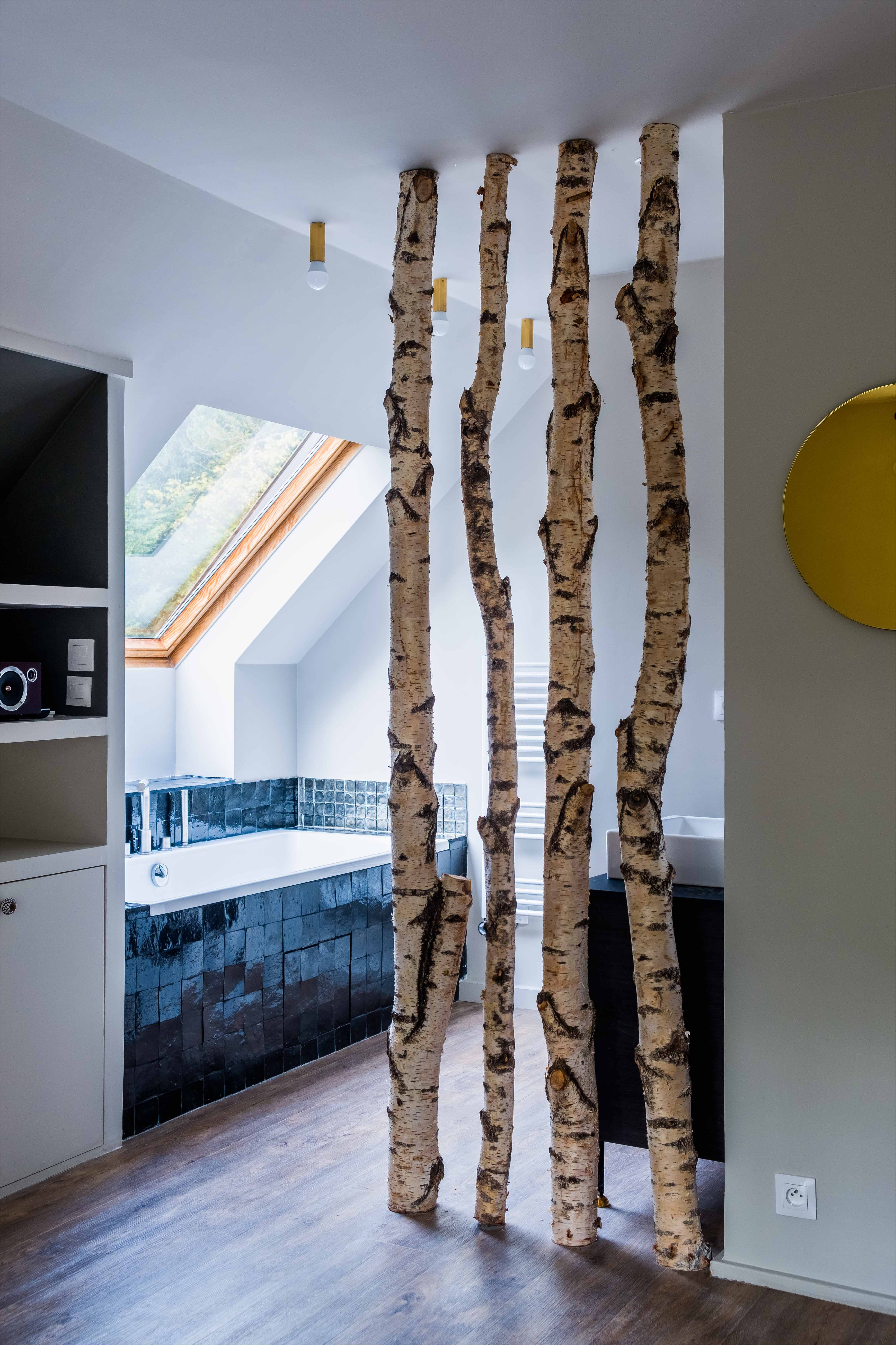 Cette maison en proche banlieue parisienne a fait l'objet d'une rénovation totale pour un couple et ses deux enfants en bas âge. Une attention particulière a été portée sur la déclinaison de l'univers décoratif graphique dans toutes les pièces ainsi que sur la sélection du mobilier et des luminaires.