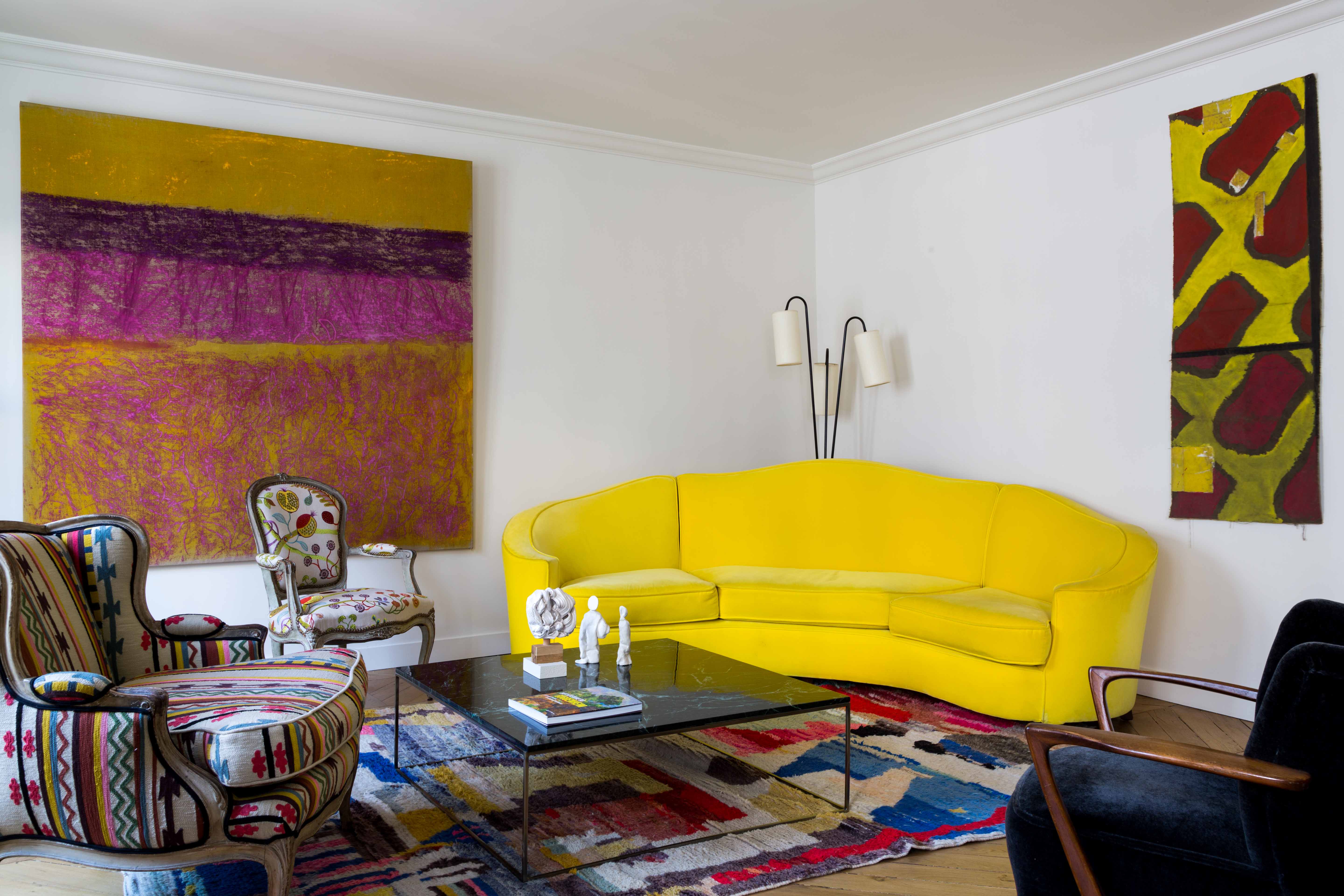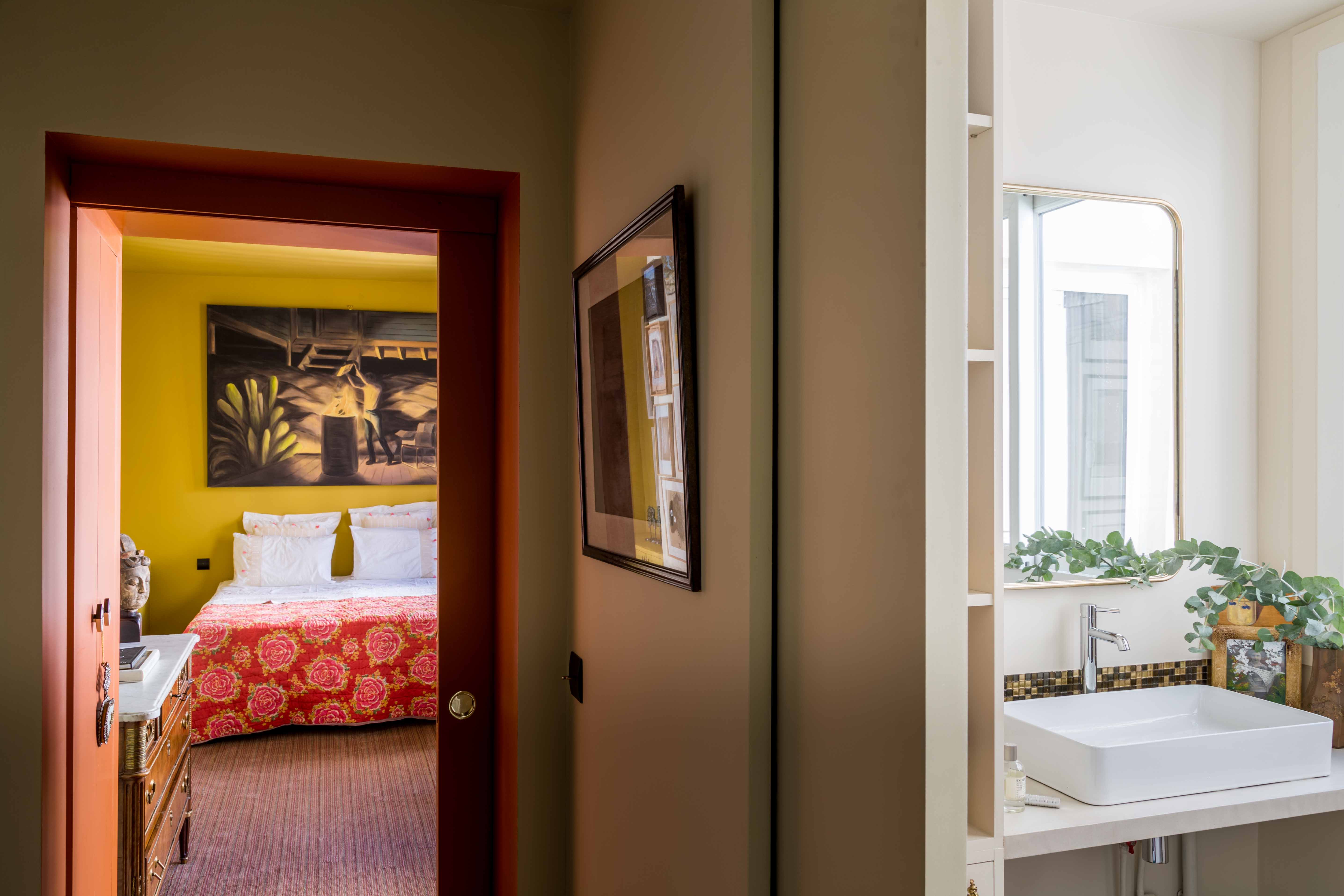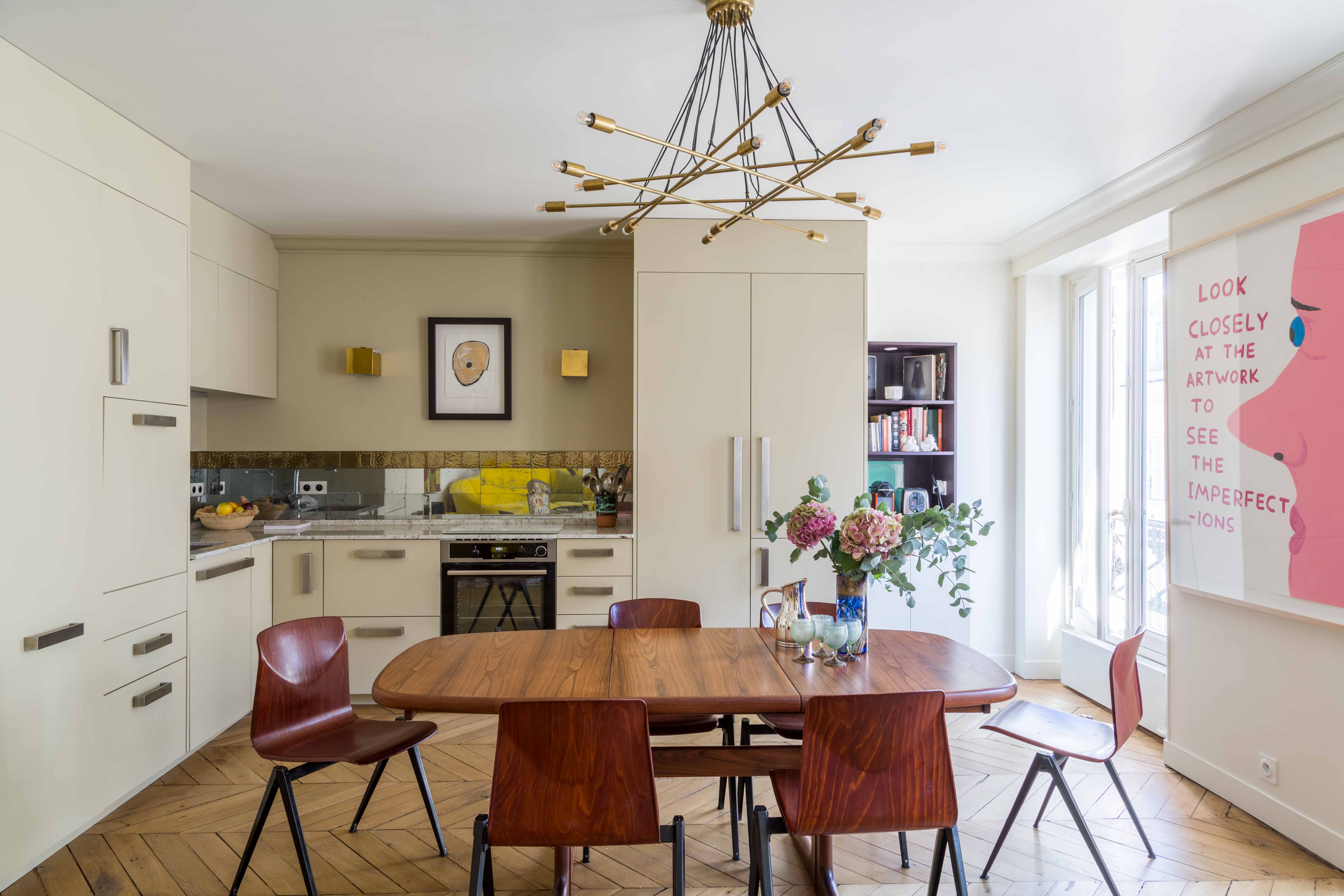 Cet appartement a fait l'objet d'une rénovation totale avec l'intégration notamment d'une cuisine dinatoire au sein du salon. Au fil des pièces de l'appartement, ce sont les oeuvres d'art des propriétaires qui sont mises en valeur et qui ponctuent de couleurs l'harmonie sereine des lieux.