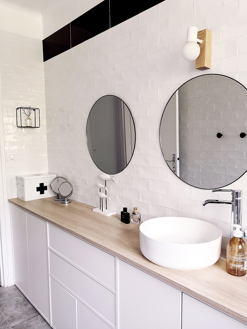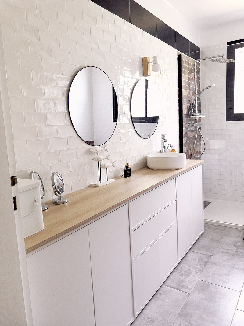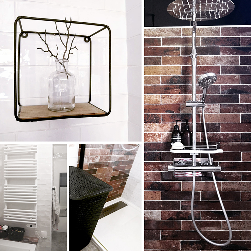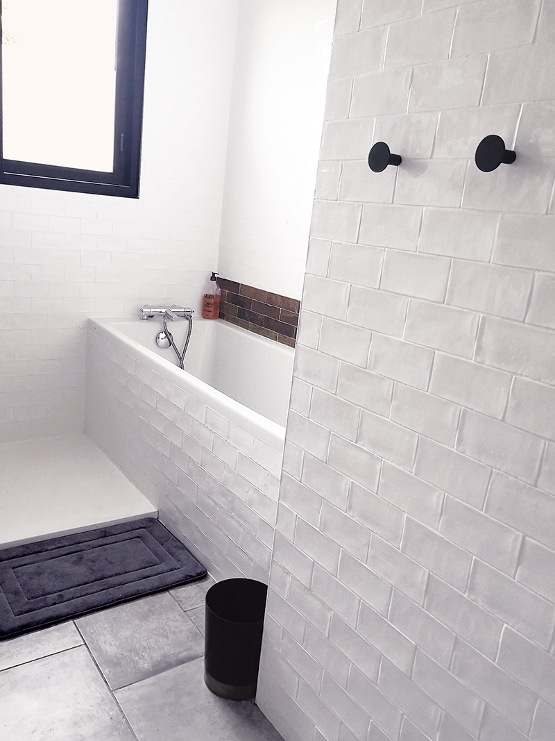 Une fois la fenêtre changée, le parti pris a été de la recouvrir intégralement d'un blanc réchauffé par l'effet de texture des carreaux et l'apport de la briques rouges.