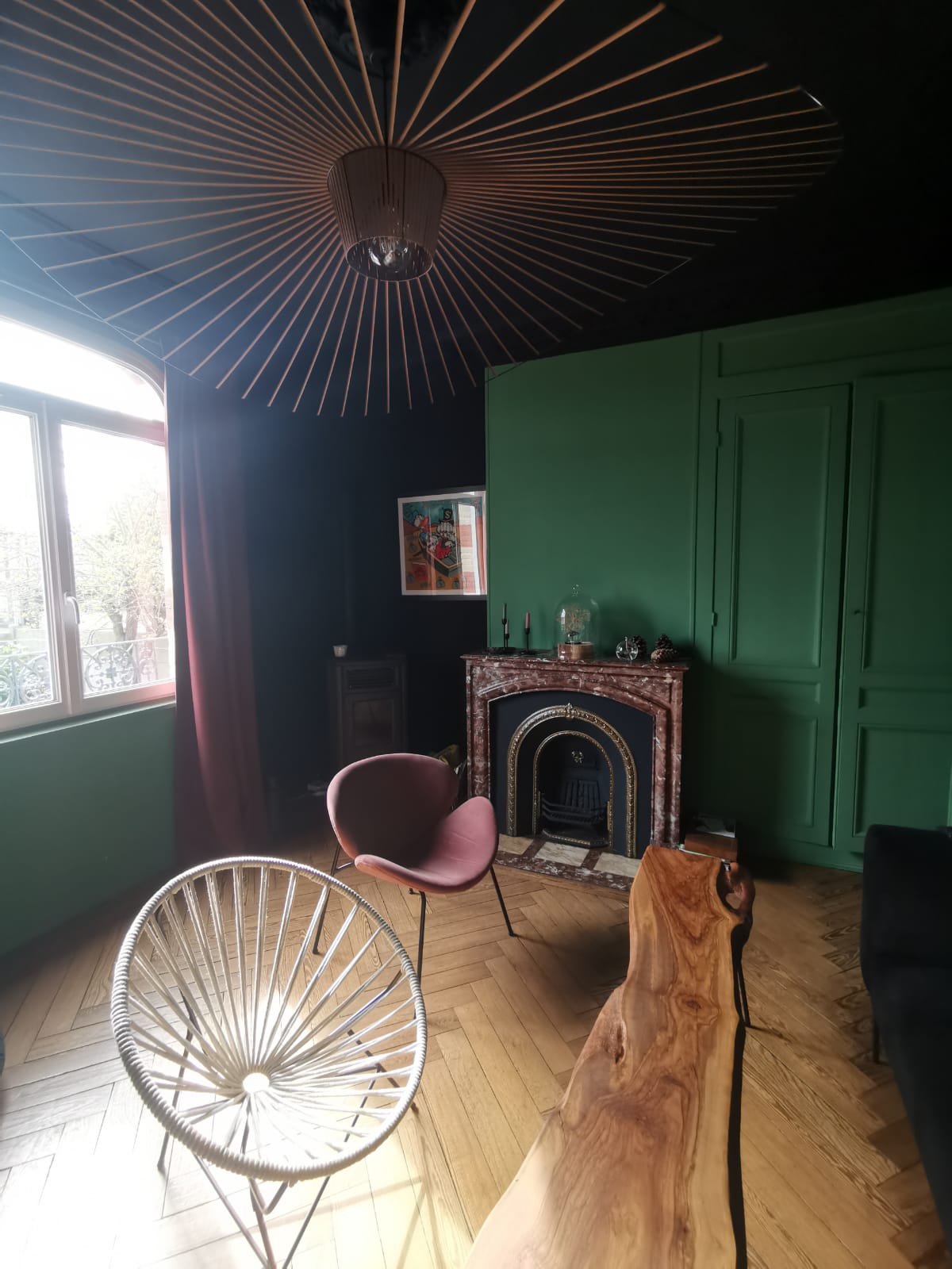 J'ai adoré travailler sur ce projet, d'une part car il s'agit de la famille, et d'autre part car les lieux avaient déjà une âme et le charme de l'ancien. Ma mission était d'apporter de la modernité sans dénaturer les lieux. Un jeu de peintures mates et un joli papier peint sur-mesure donnent le ton, la décoration sobre et épurée a fait le reste.
