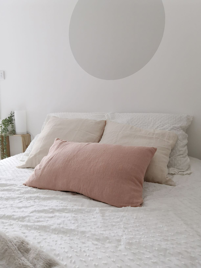 Création d'un plafonnier et ajout de prises électriques, modification des coffrages en tête de lit pour donner de la perspective tout en offrant à la jeune femme un écrin propice à la détente et à la rêverie.