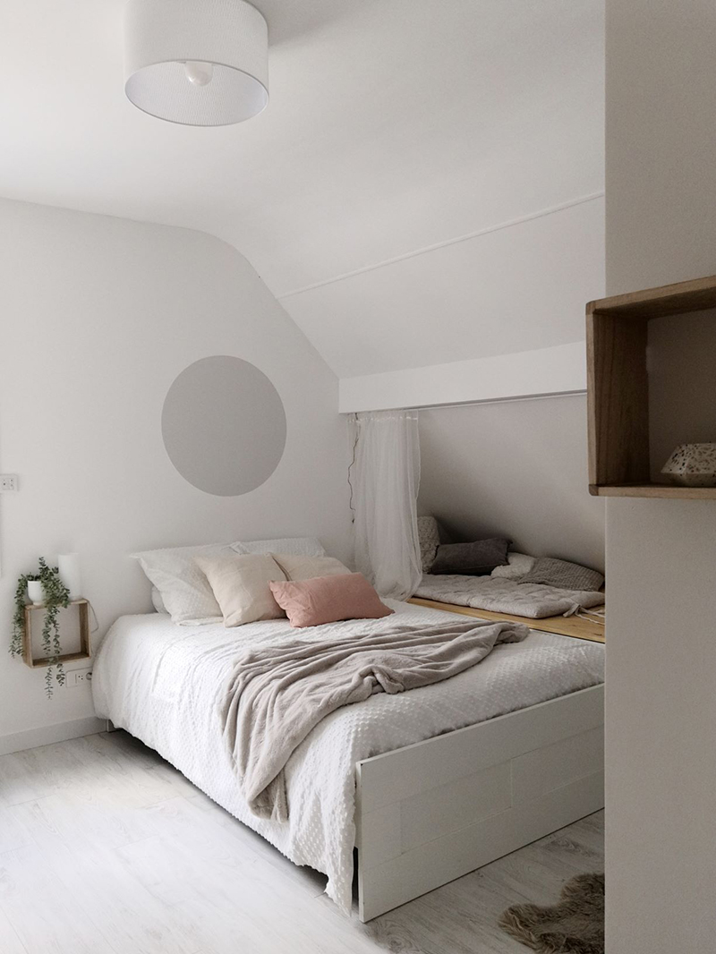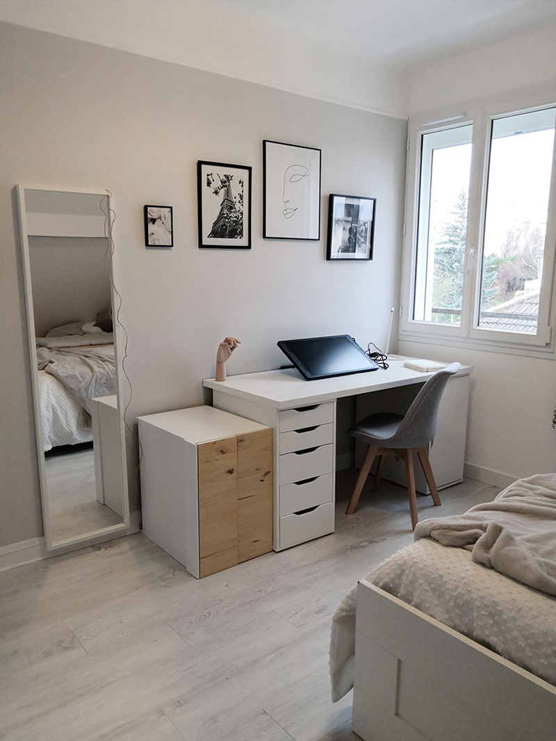 Chambre d'une ado de 16ans repensée pour créer un espace plus clair et aérien.