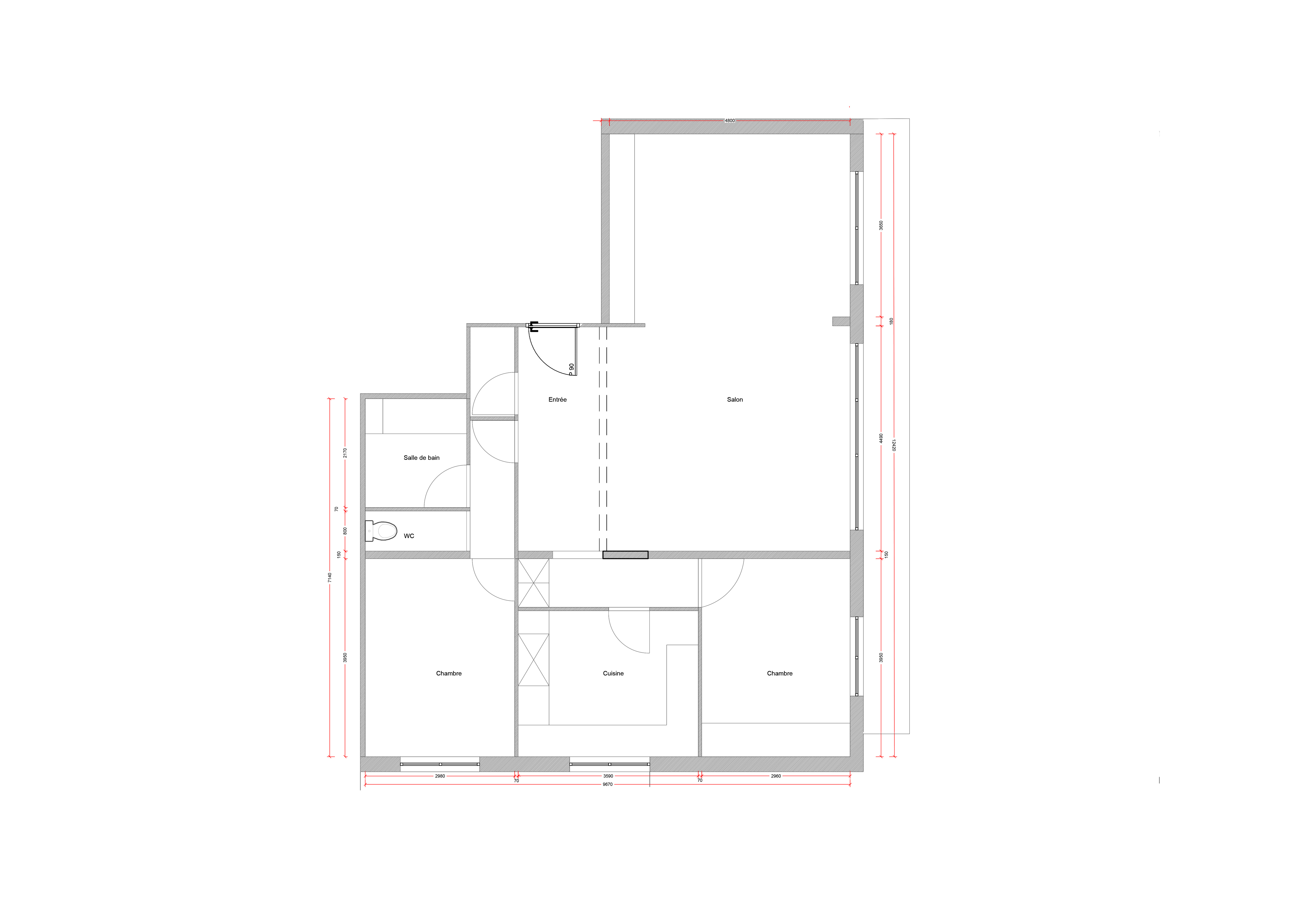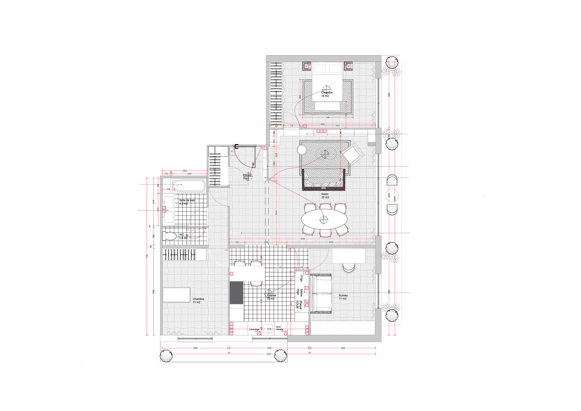 Les clients ont souhaité revoir les proportions de l'appartement en créant une troisième chambre.