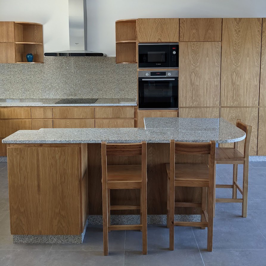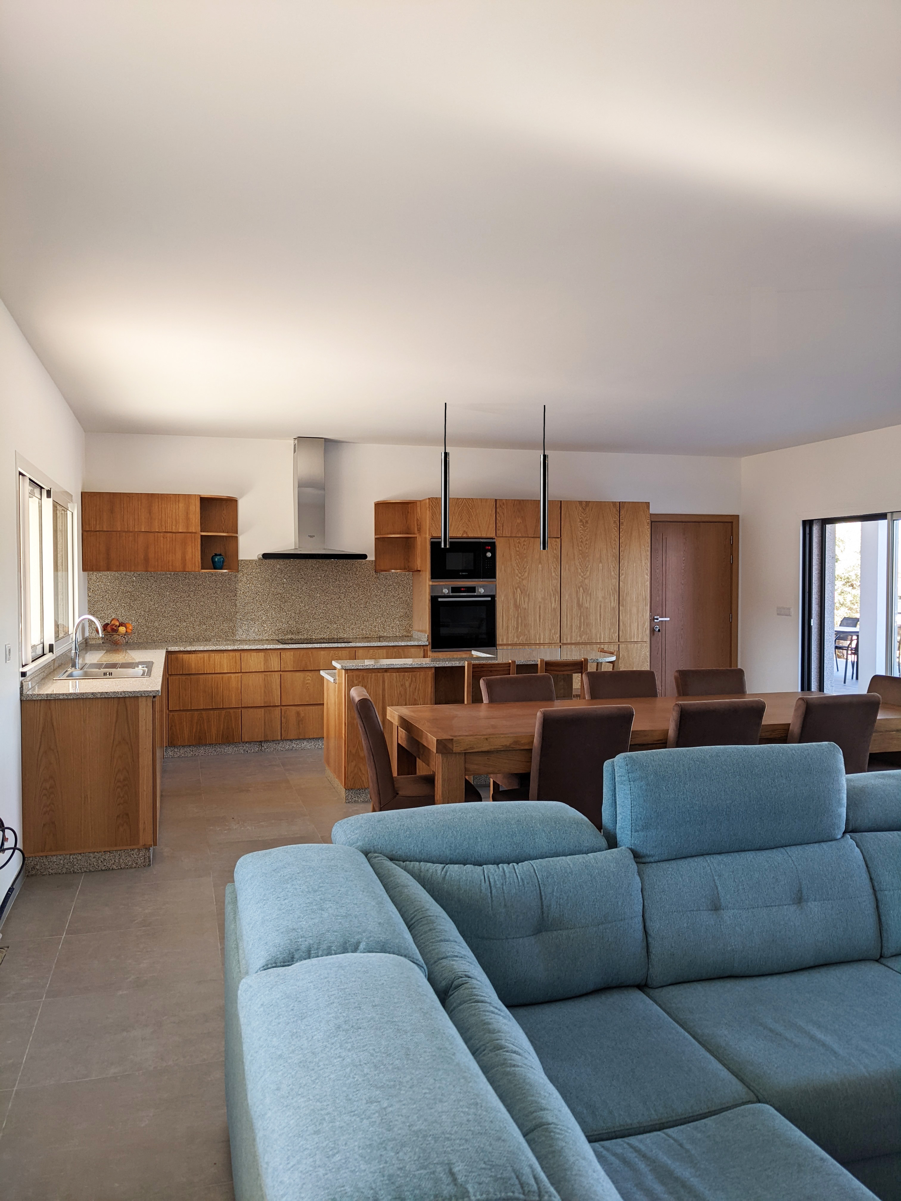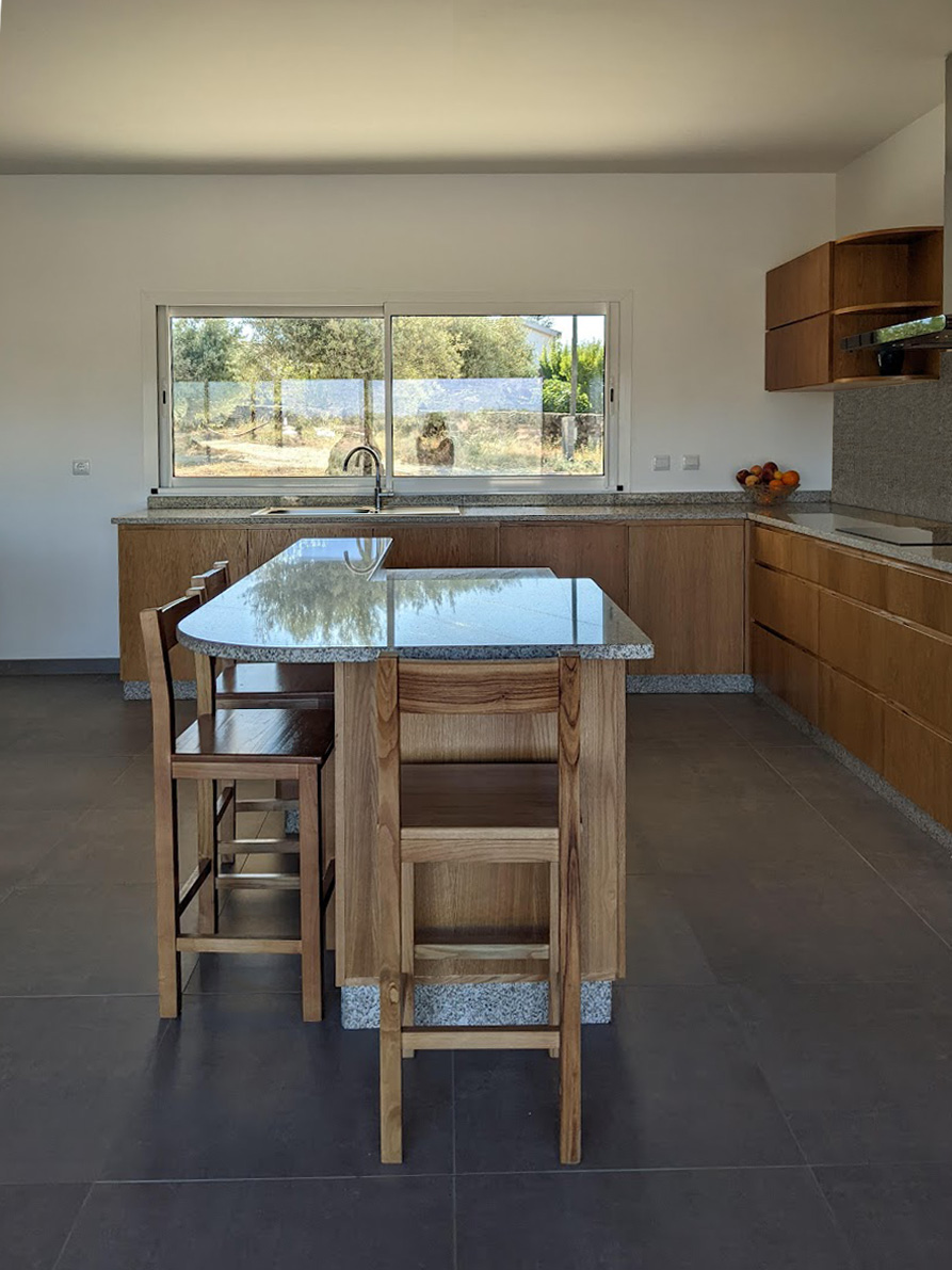 A l'intérieur, la casa Serrado fait cohabiter plusieurs générations avec une répartition jour/nuit franche et des espaces généreux. Notamment une grande pièce à vivre avec sa vue panoramique, sa cuisine ouverte et le mobilier de salle à manger sur mesure assortis.
