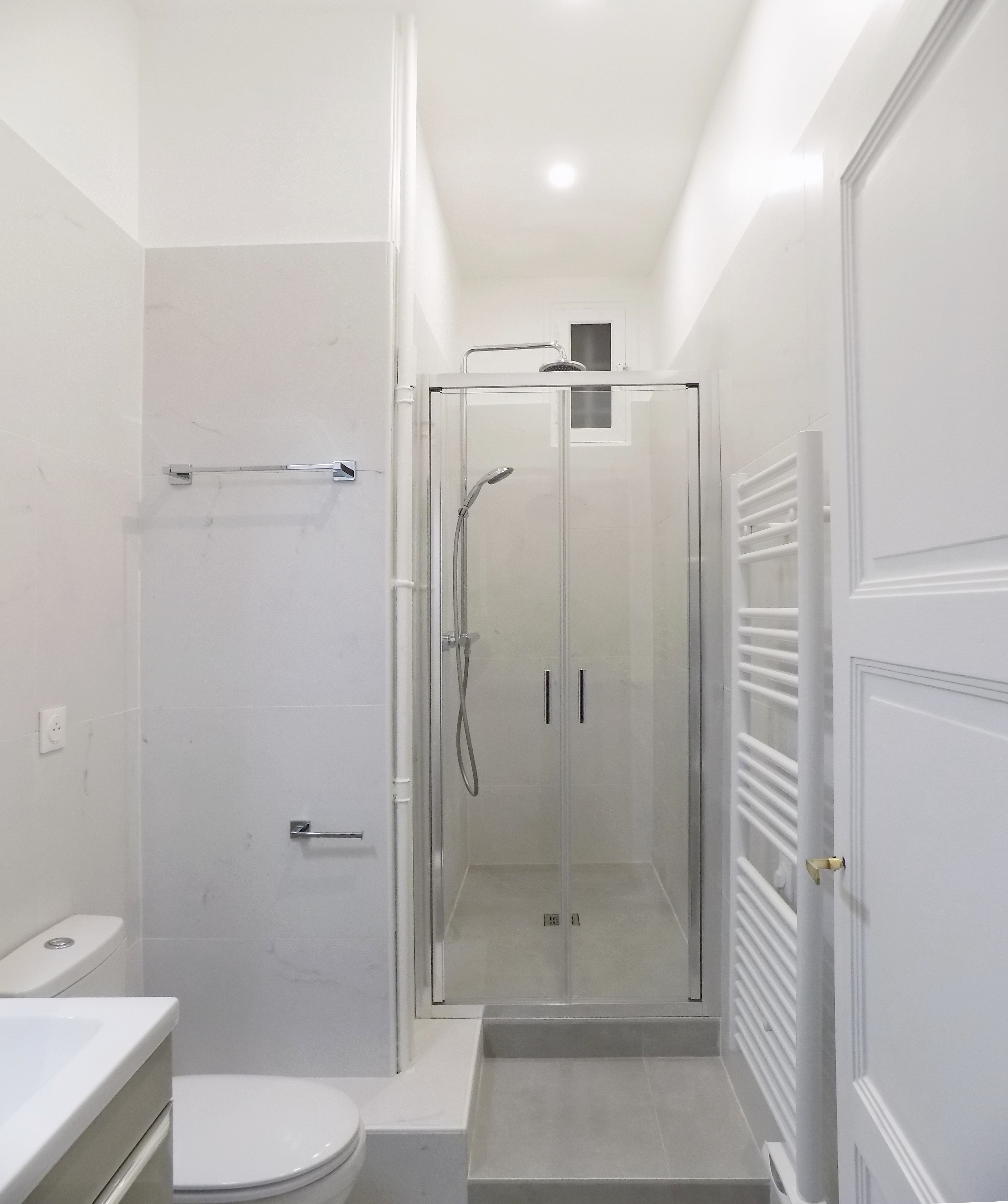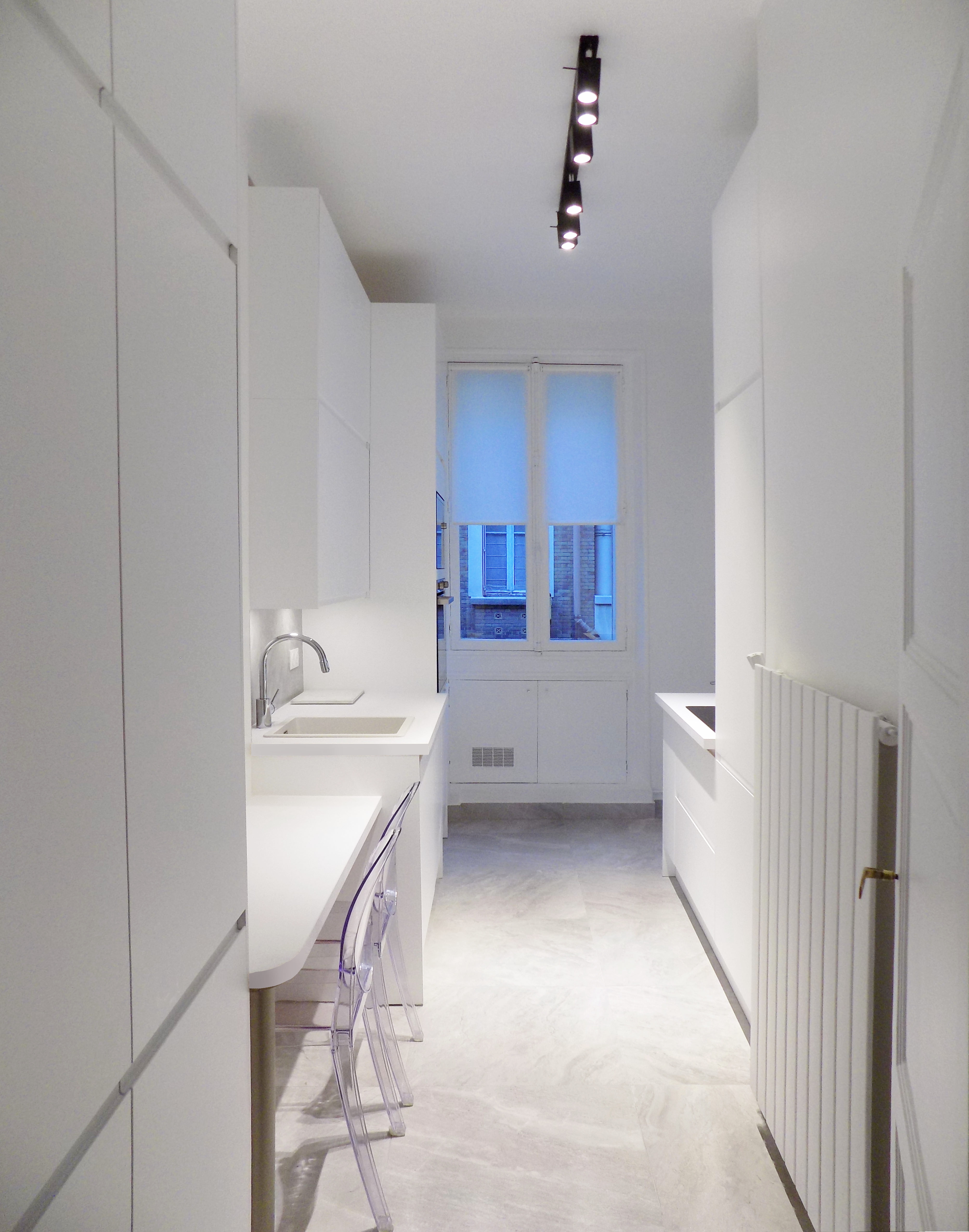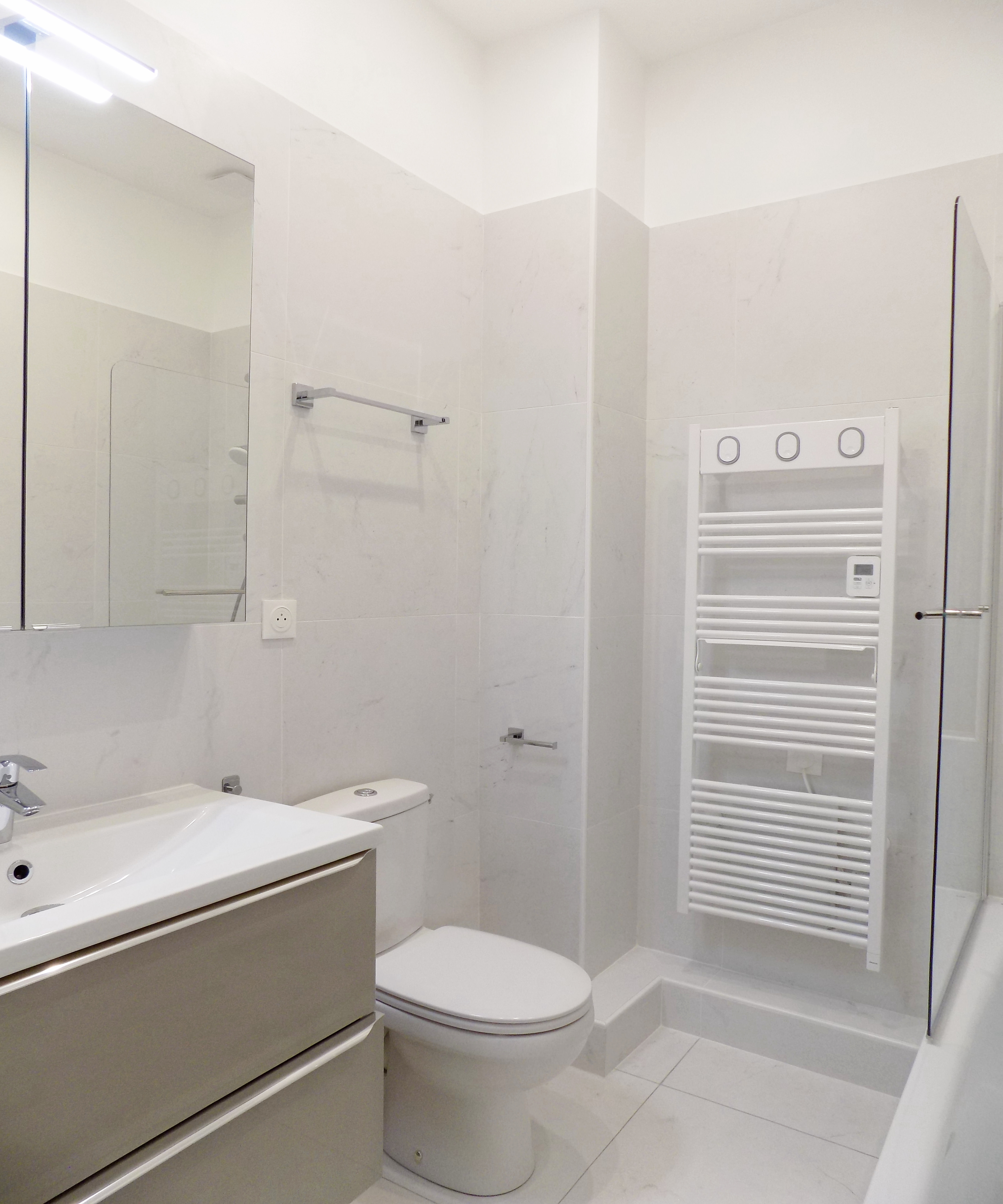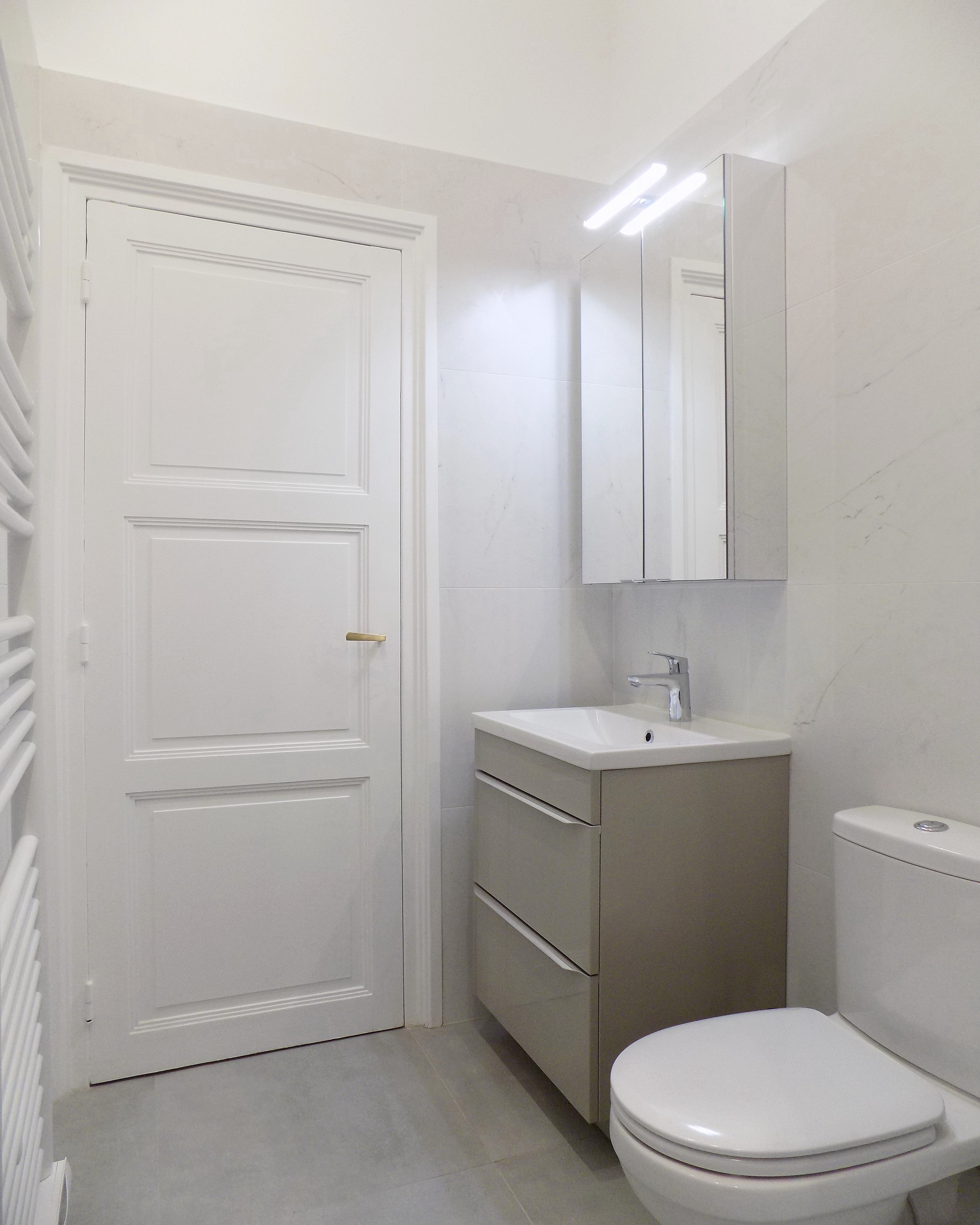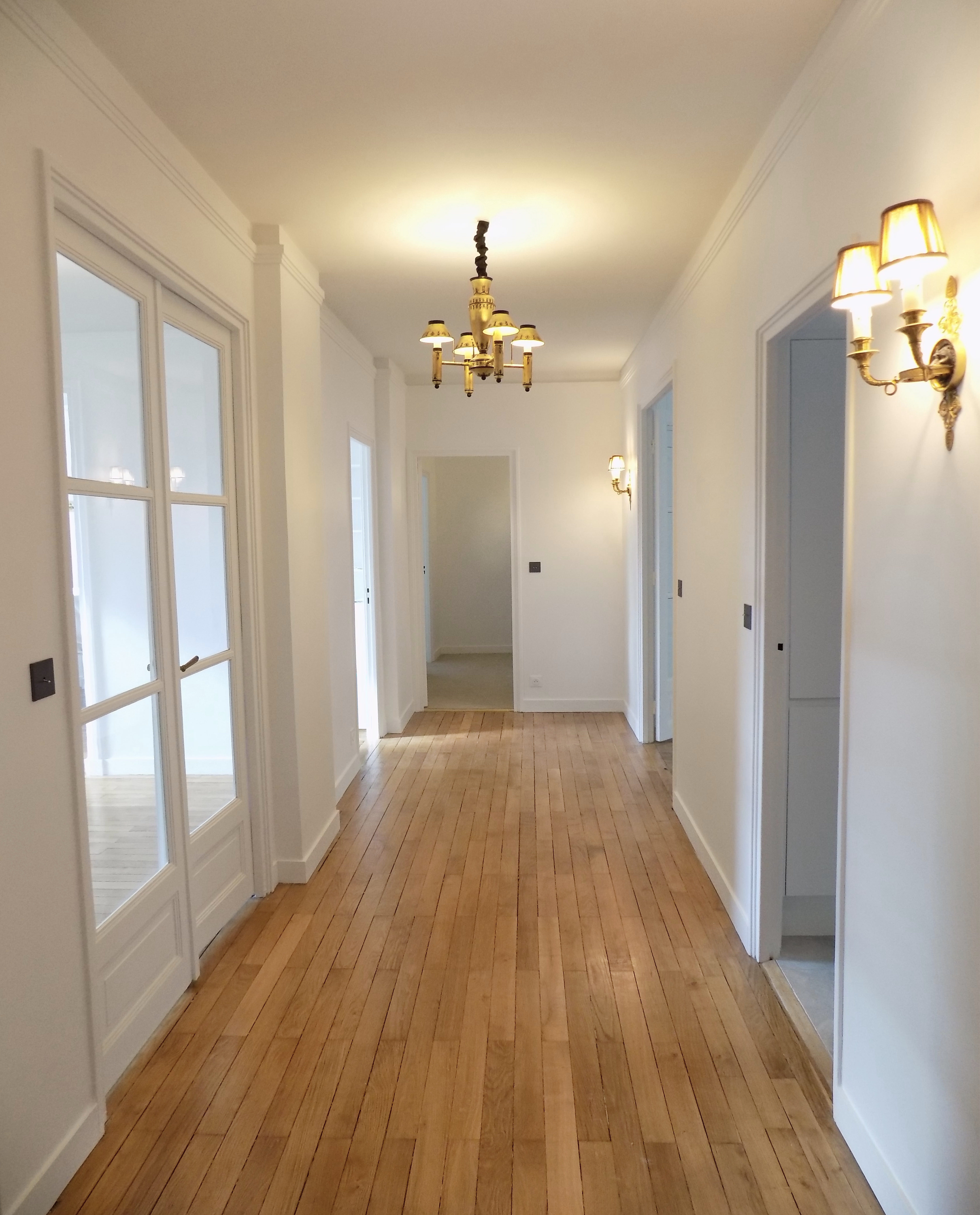 Dans un appartement classique bordant l'hippodrome d'Auteuil, rénovation totale avec nouveau plan et création d'une deuxième salle de douche