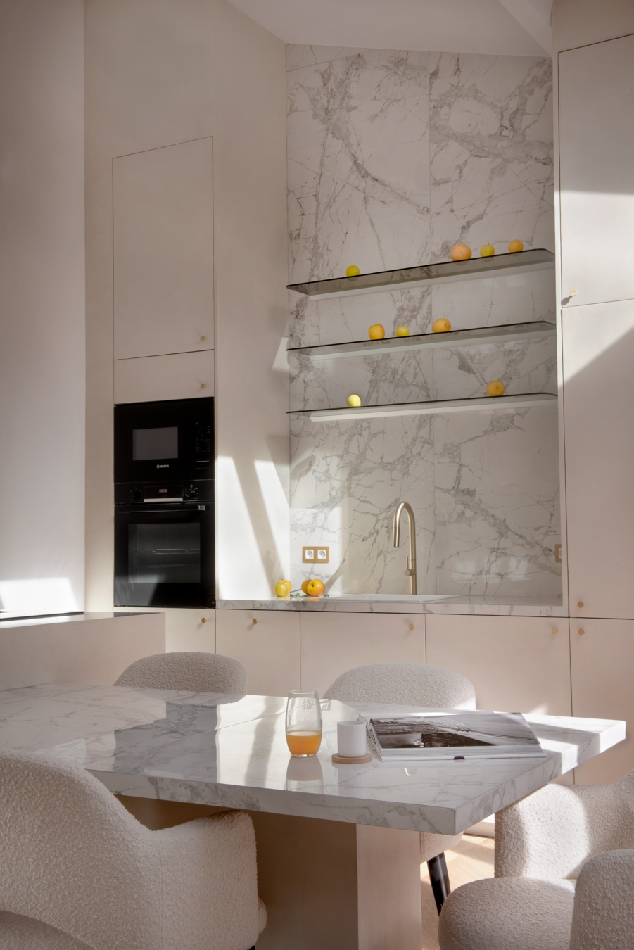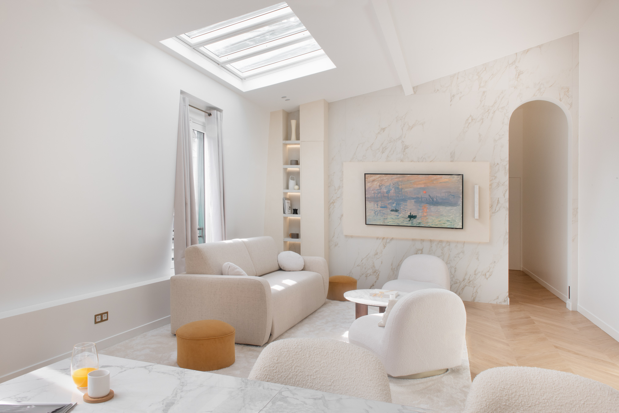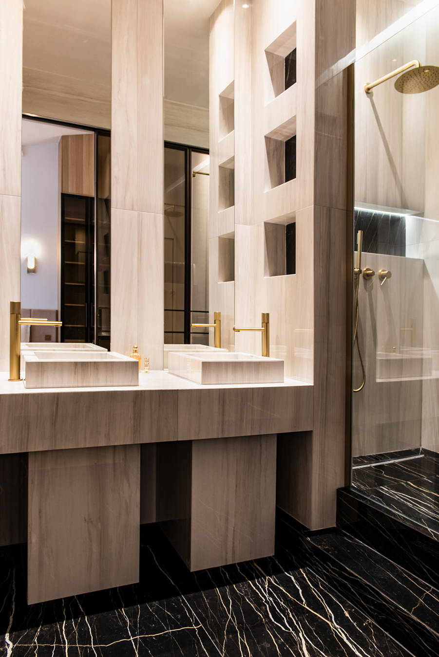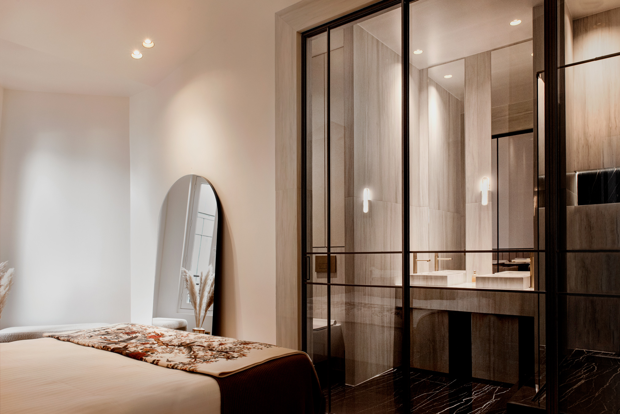 Rennovation complète d'un ancien cabinet médical pour en faire un appartement locatif premium. Tout a été démoli et réagencé pour créer un vaste espace de vie avec cuisine ouverte, deux chambres avec leurs salles de bain privatives et des WC séparés. Design contemporain, chaleur et confort : l'appartement offre le standing d'un hôtel tout en permettant de se sentir comme chez soi.