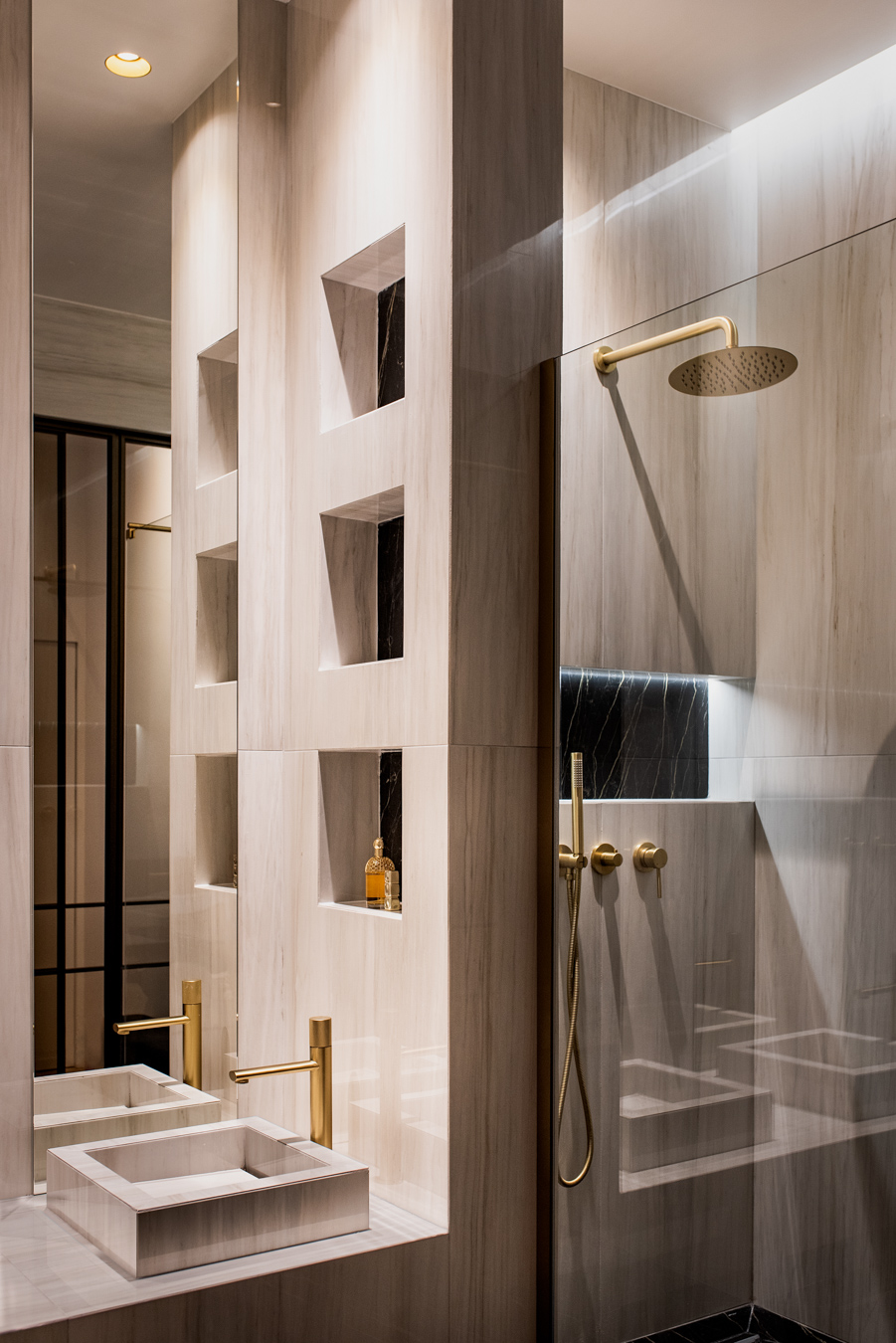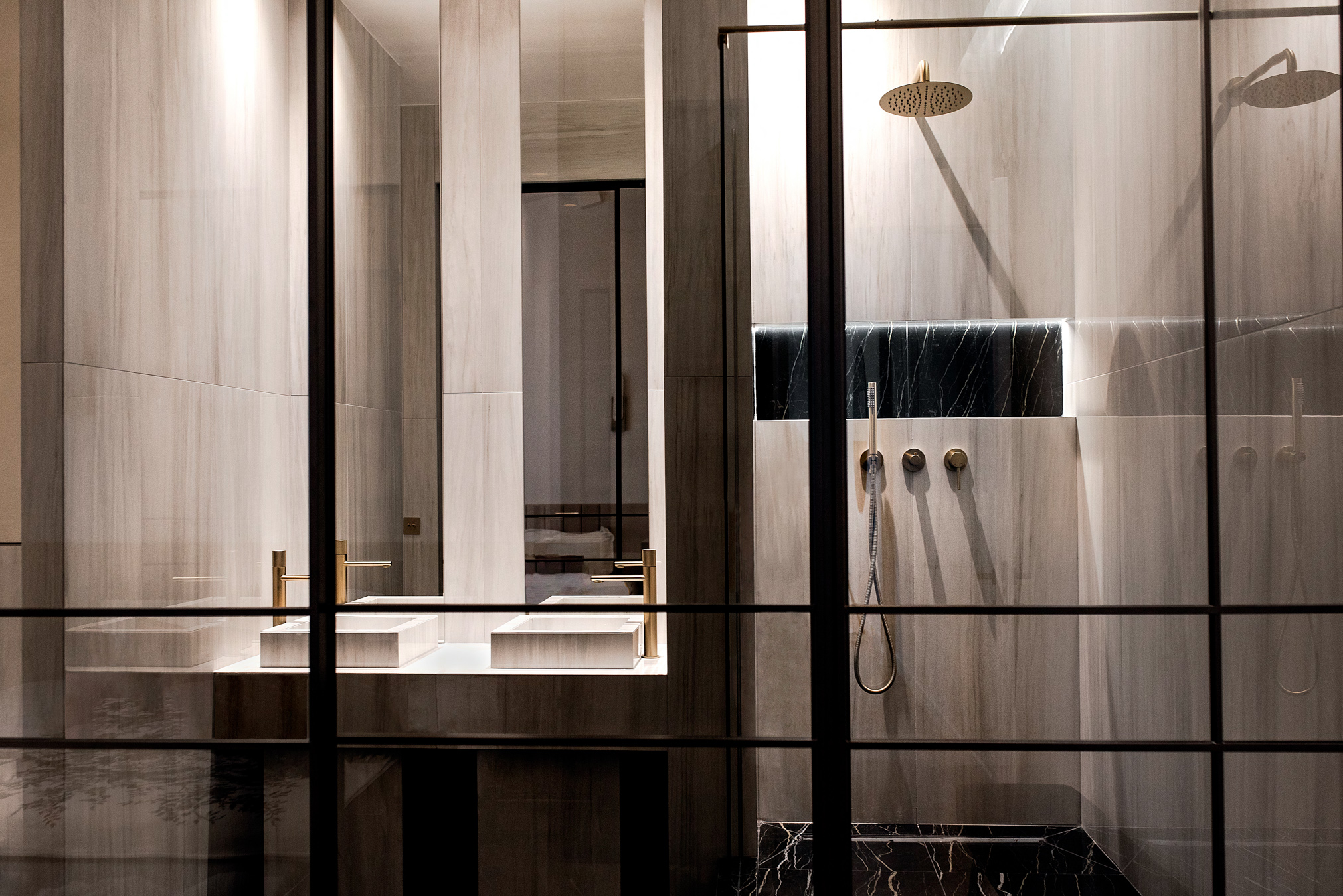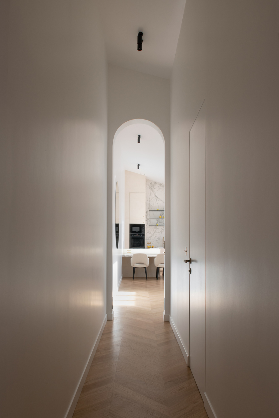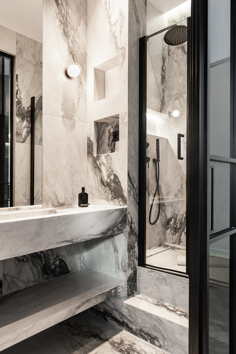 Rennovation complète d'un ancien cabinet médical pour en faire un appartement locatif premium. Tout a été démoli et réagencé pour créer un vaste espace de vie avec cuisine ouverte, deux chambres avec leurs salles de bain privatives et des WC séparés. Design contemporain, chaleur et confort : l'appartement offre le standing d'un hôtel tout en permettant de se sentir comme chez soi.