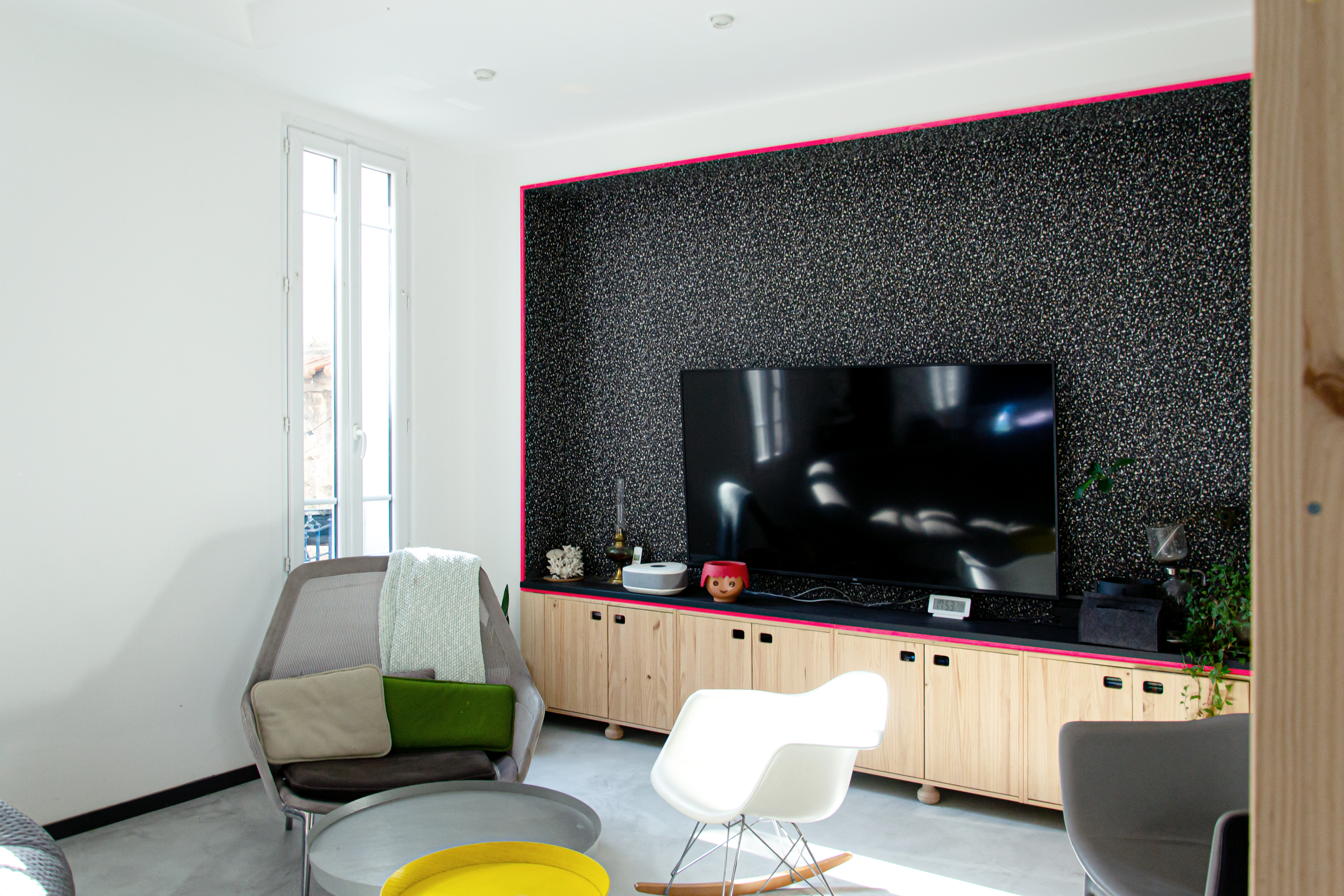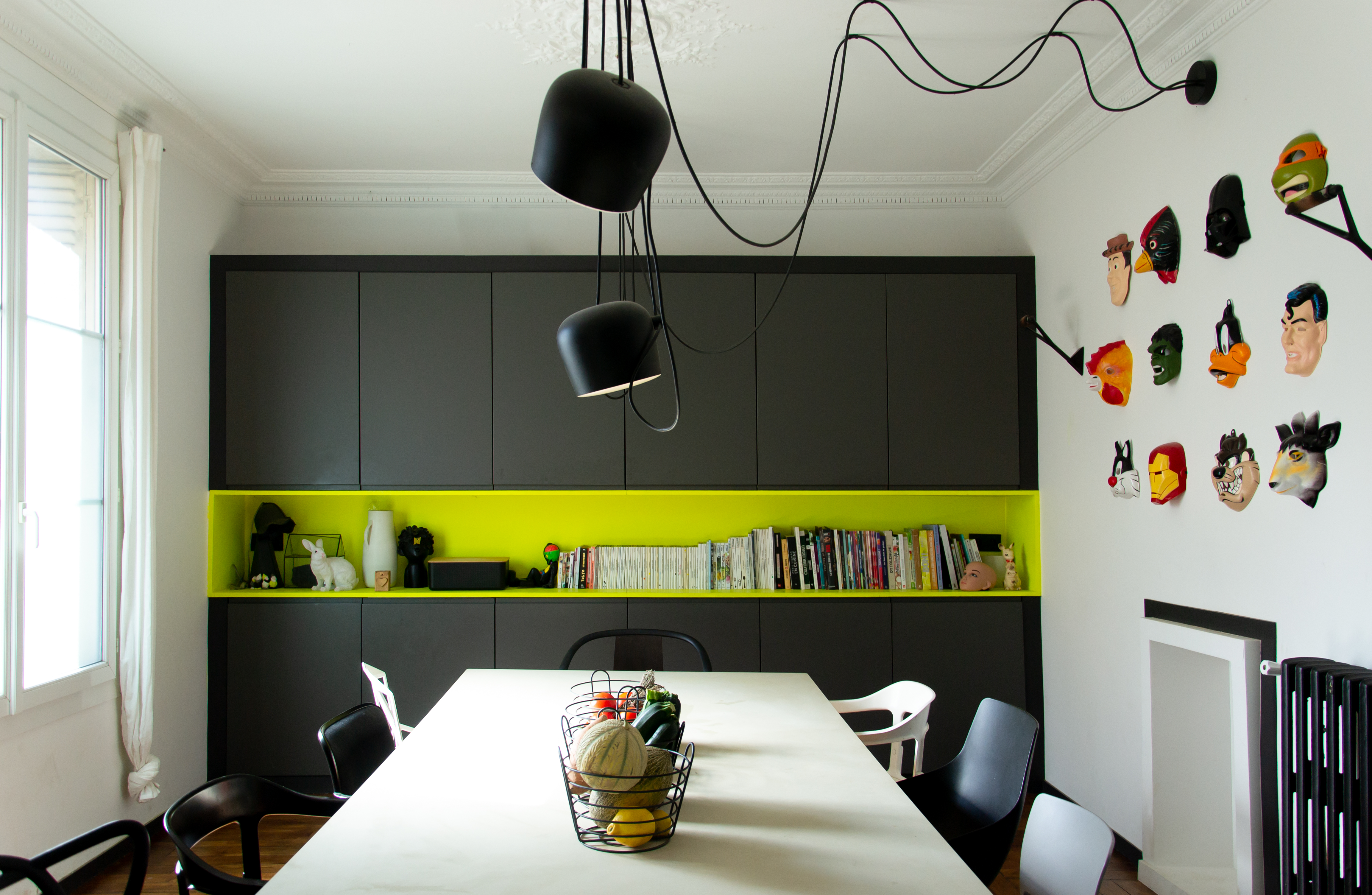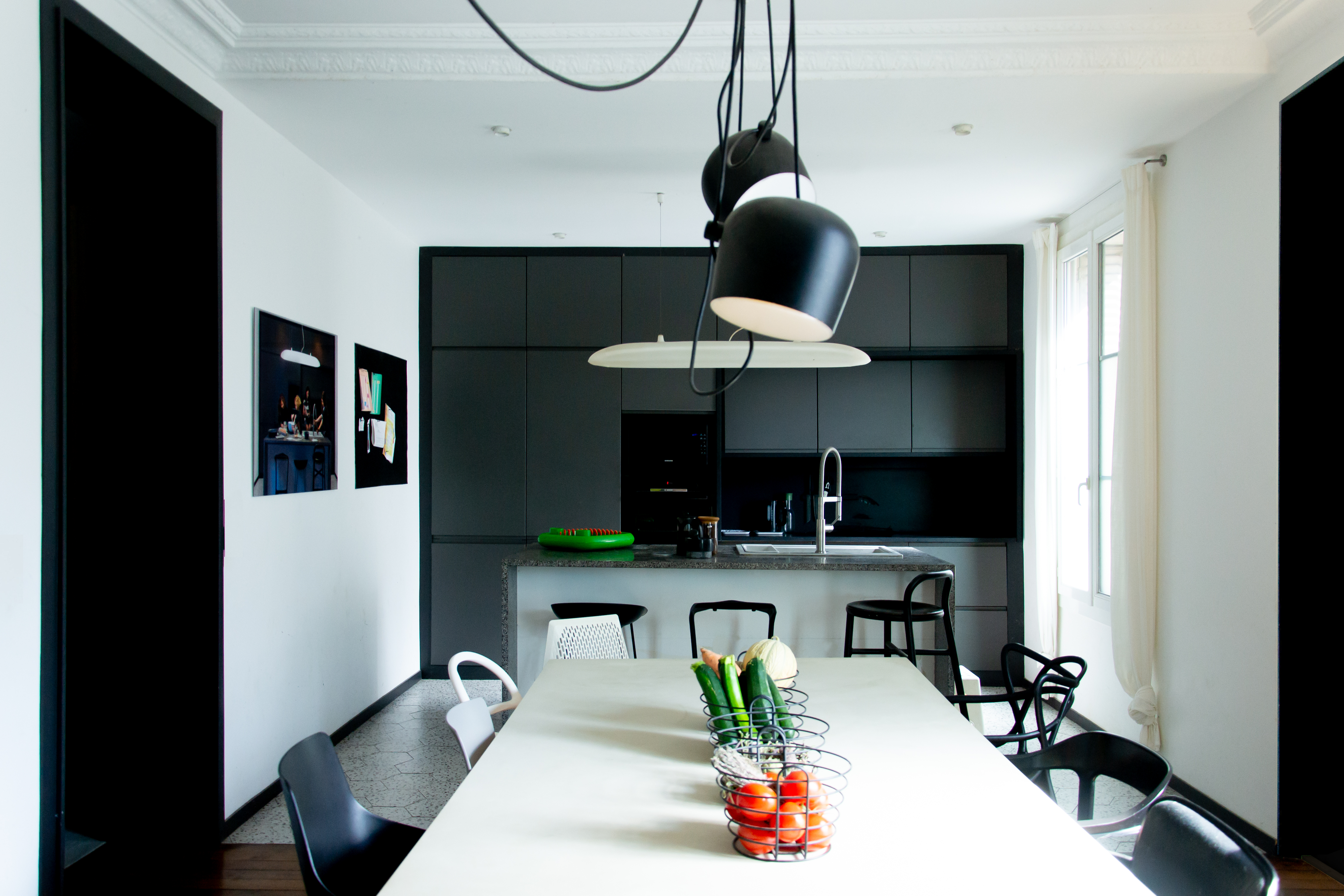Le bien est trouvé, mais divisé en deux appartements distincts sans communication. Le rez de chaussée est dans son jus, voir en mauvais état dans certaines pièces, et réparti en plein de petites pièces. Le travail a été de retrouver la grandeur de la bâtisse, et valoriser son existant avec ses corniches, son parquet, ses radiateurs en fonte. Pour au final, conserver l'existant et le transporter dans le nouveau siècle.