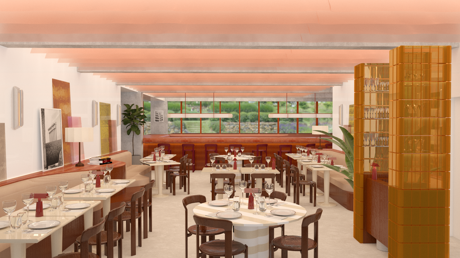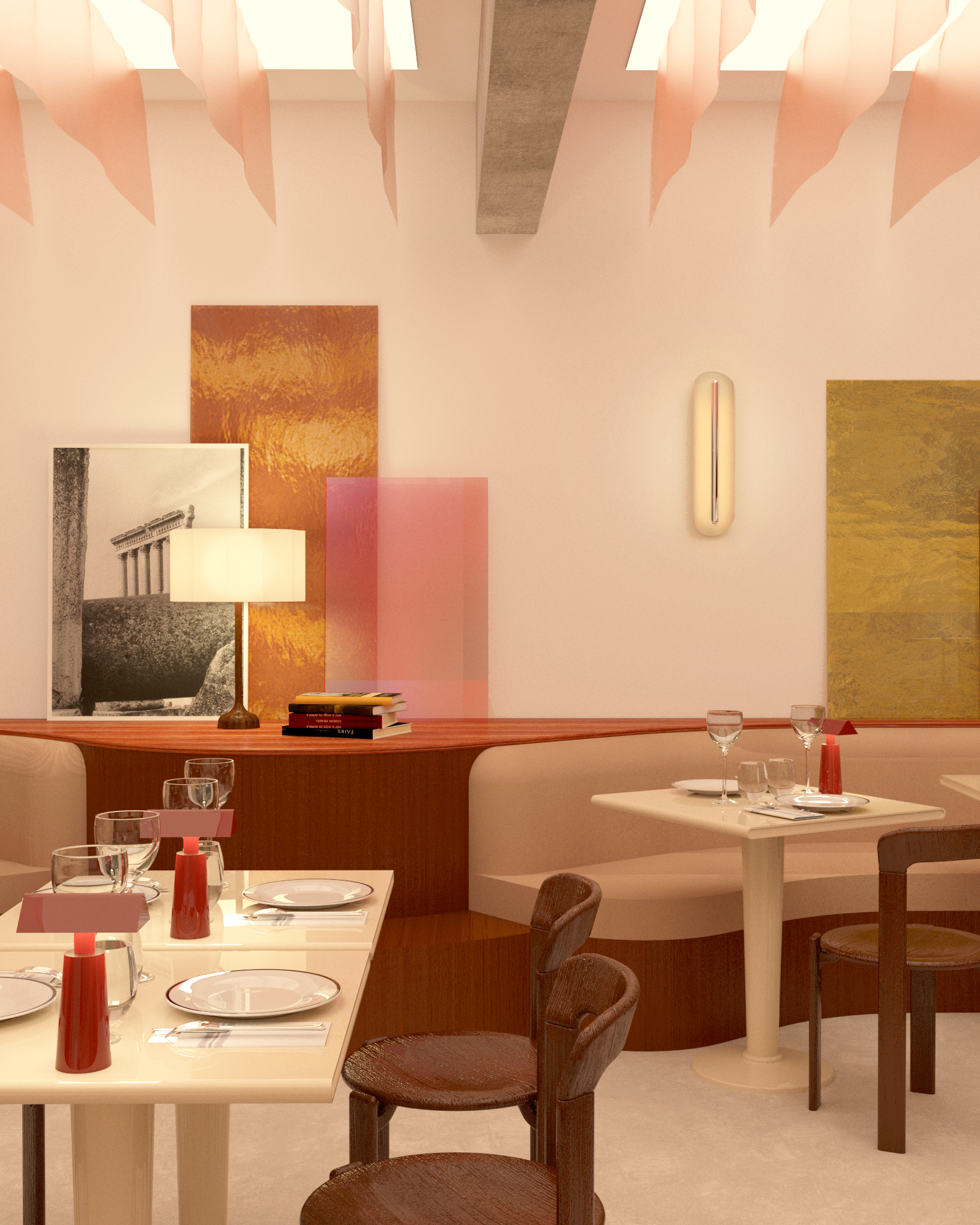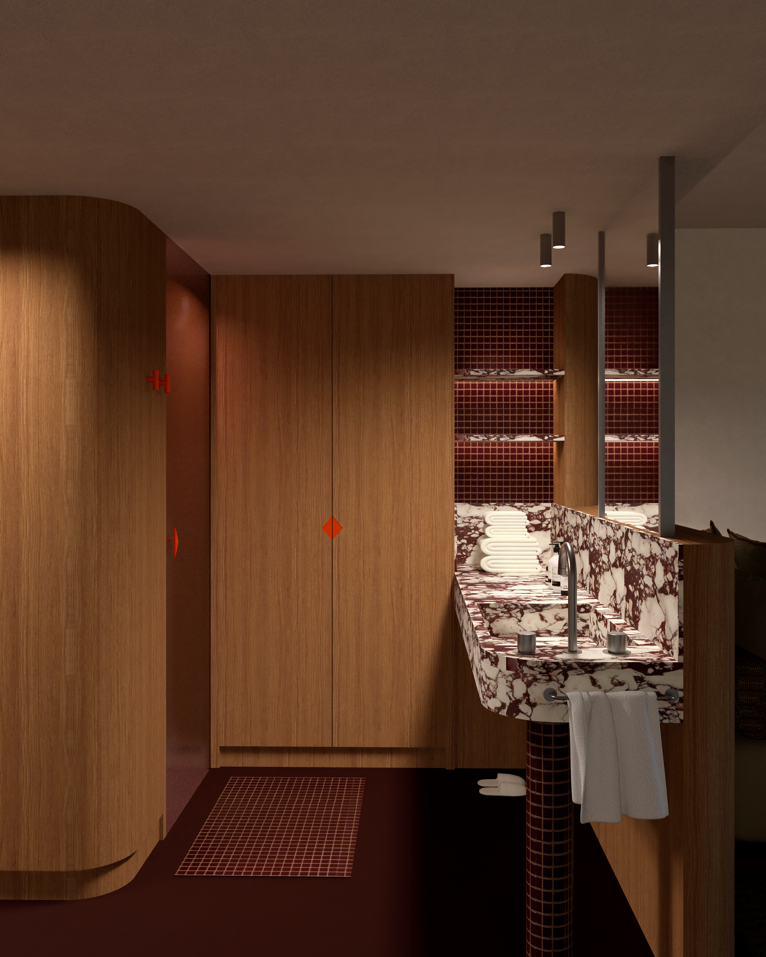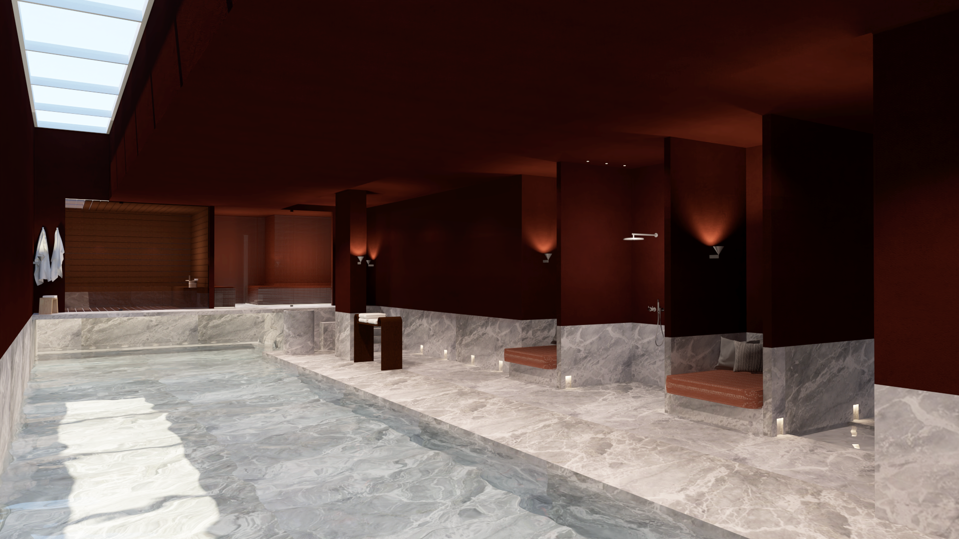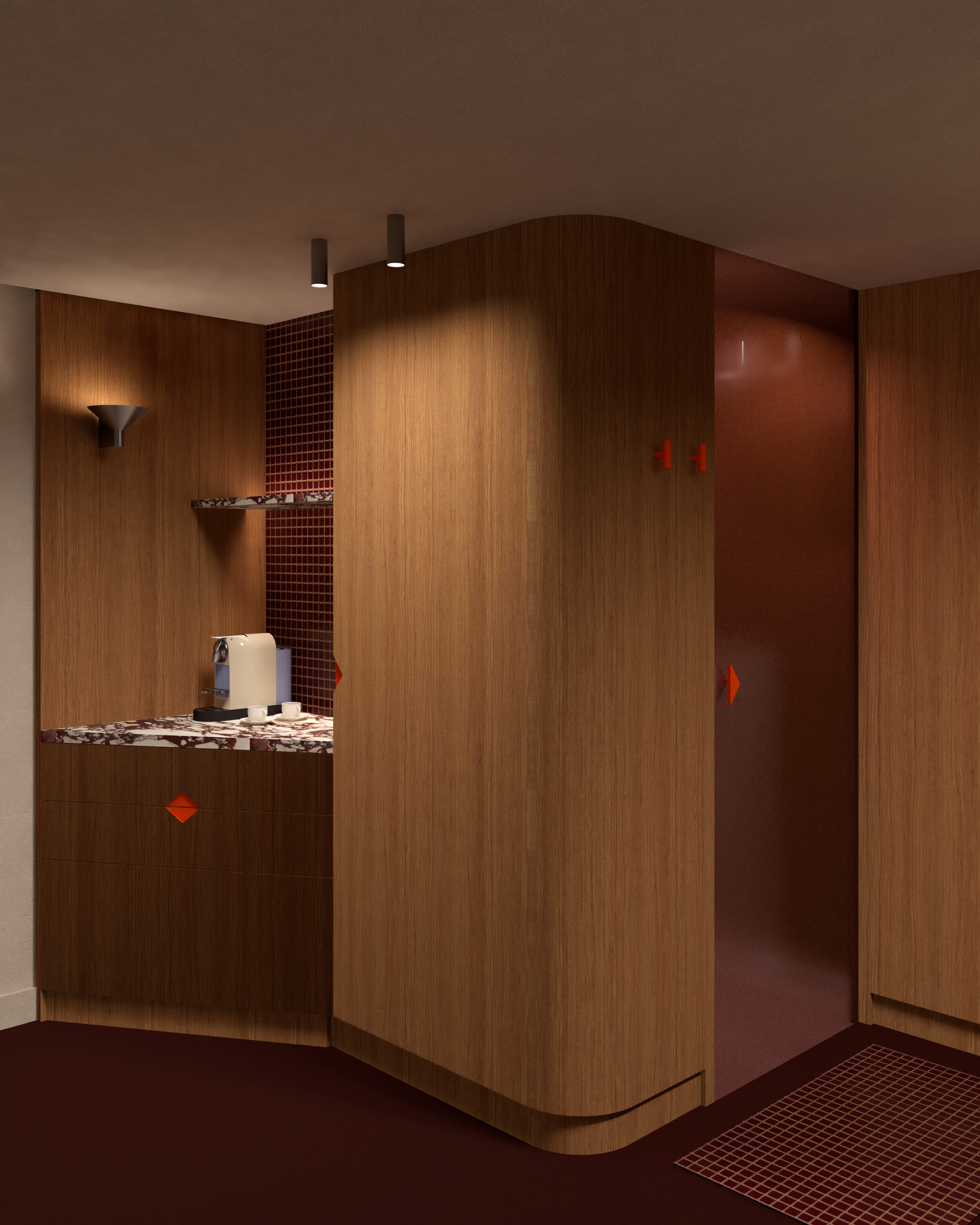 Appel à projet pour la transformation d’un ancien parking en un hôtel parisien 5 étoiles. Le concept propose une palette chaleureuse de teintes brunes, subtilement rehaussée par des touches de minéralité et de brillance, créant une atmosphère élégante et raffinée.