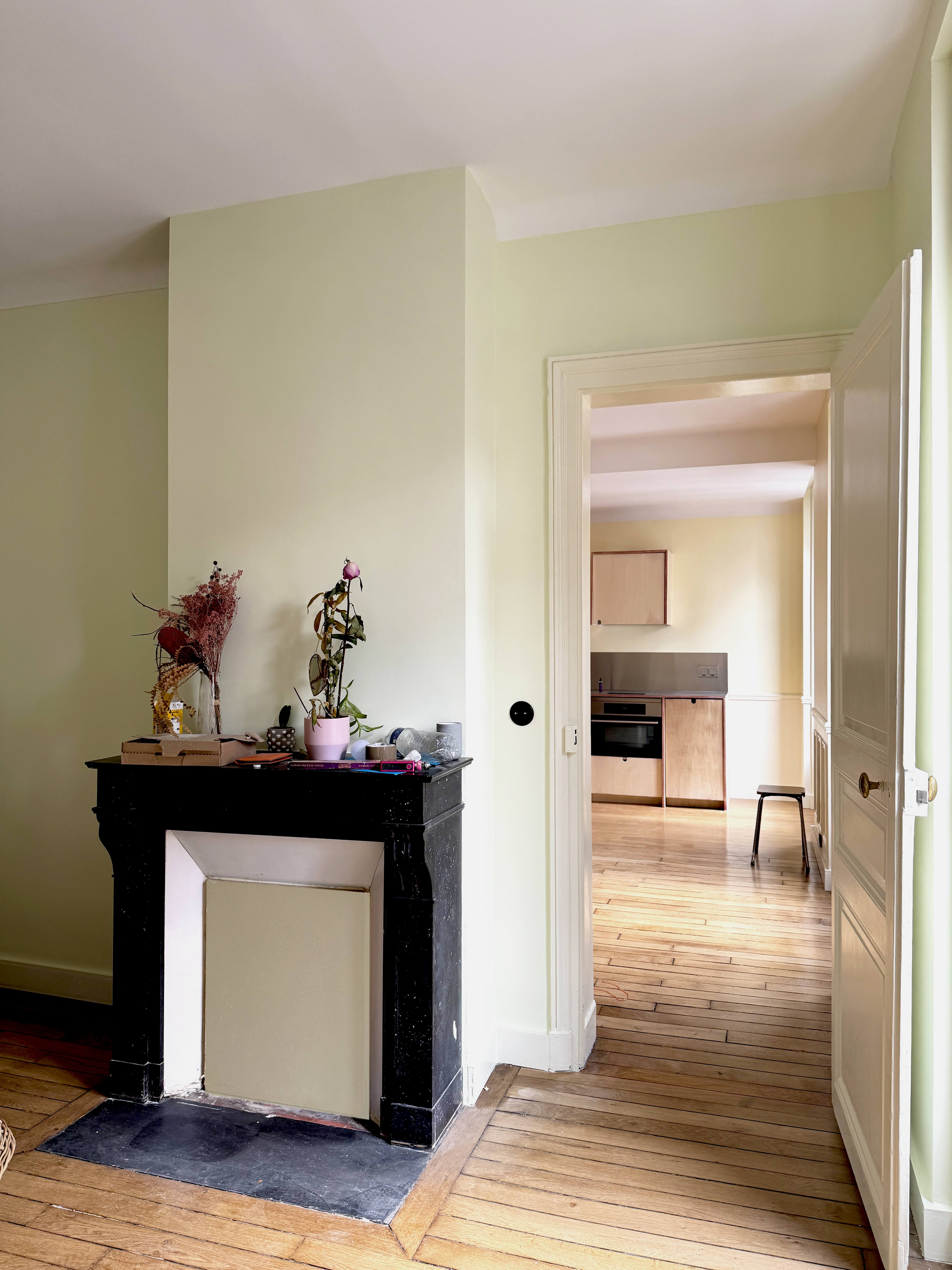 Le projet révèle les interstices de l’existant, transforme les espaces oubliés en lieux vivants, et fait émerger la poésie du fonctionnel. Une ouverture dans un mur porteur permet de relier la chambre à la salle d’eau, offrant un accès direct au dressing et redonnant cohérence à l’ensemble, en dissociant l’usage professionnel de l’intime. L’atelier en fond de pièces, prend place dans l’ancien bureau.