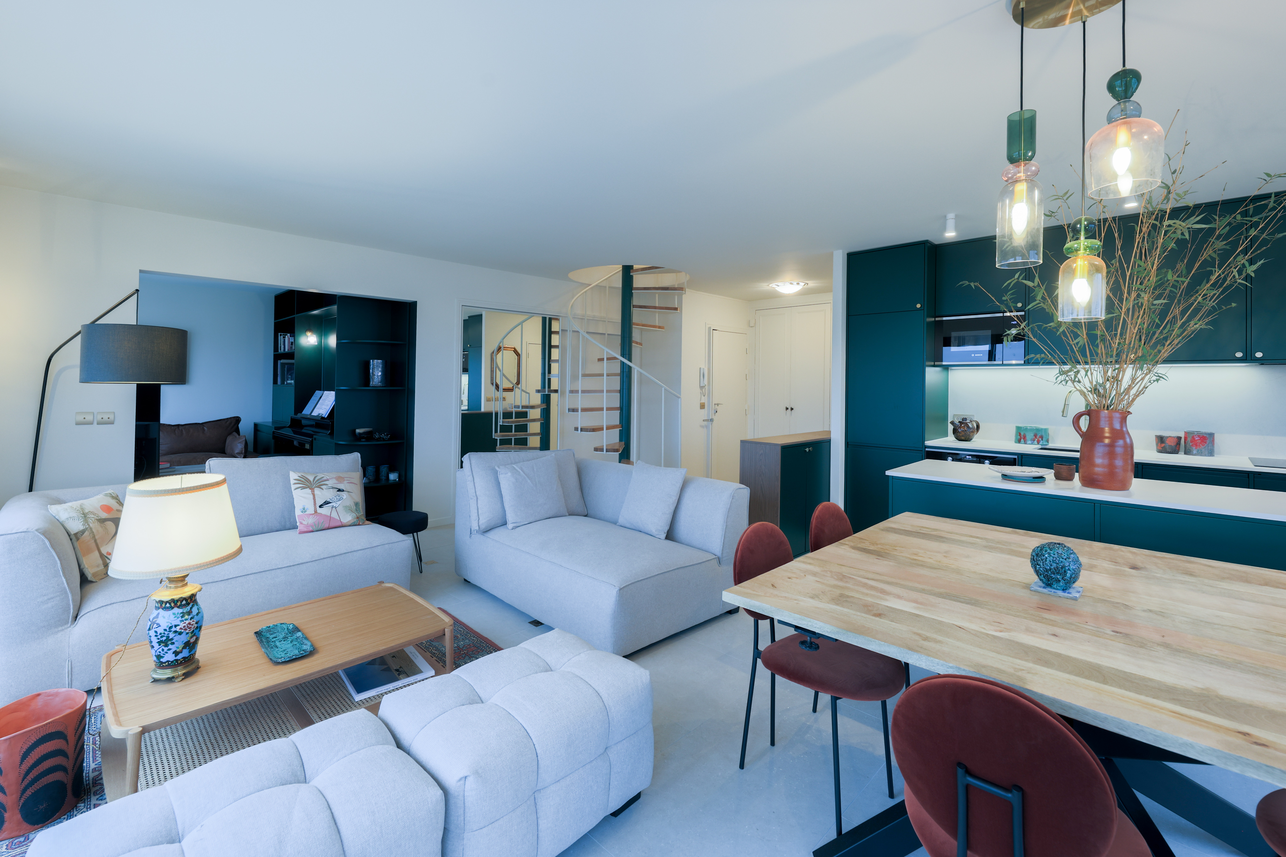 Ce duplex avec toit-terrasse a fait l’objet d’une rénovation complète, pensée pour révéler tout son potentiel.