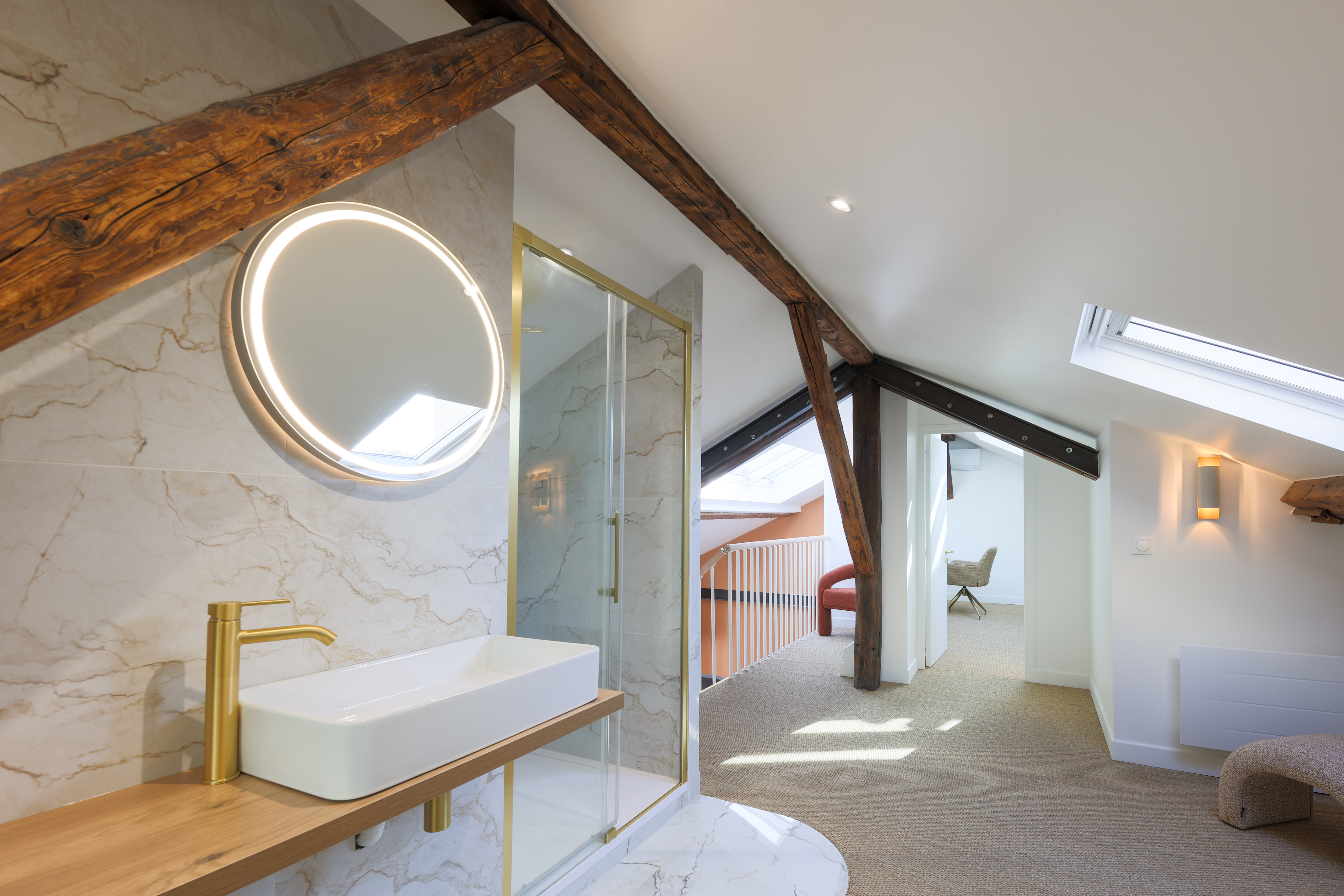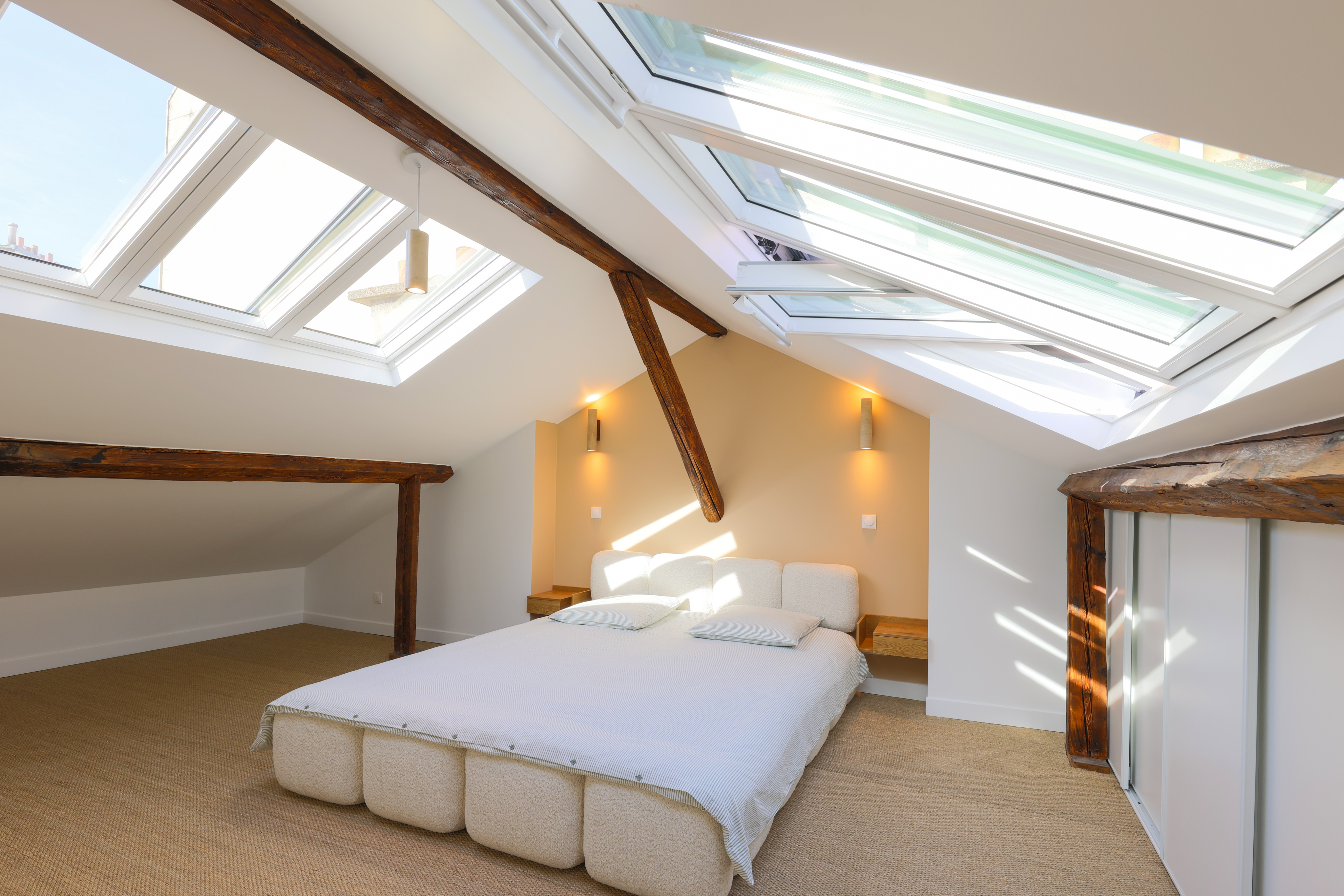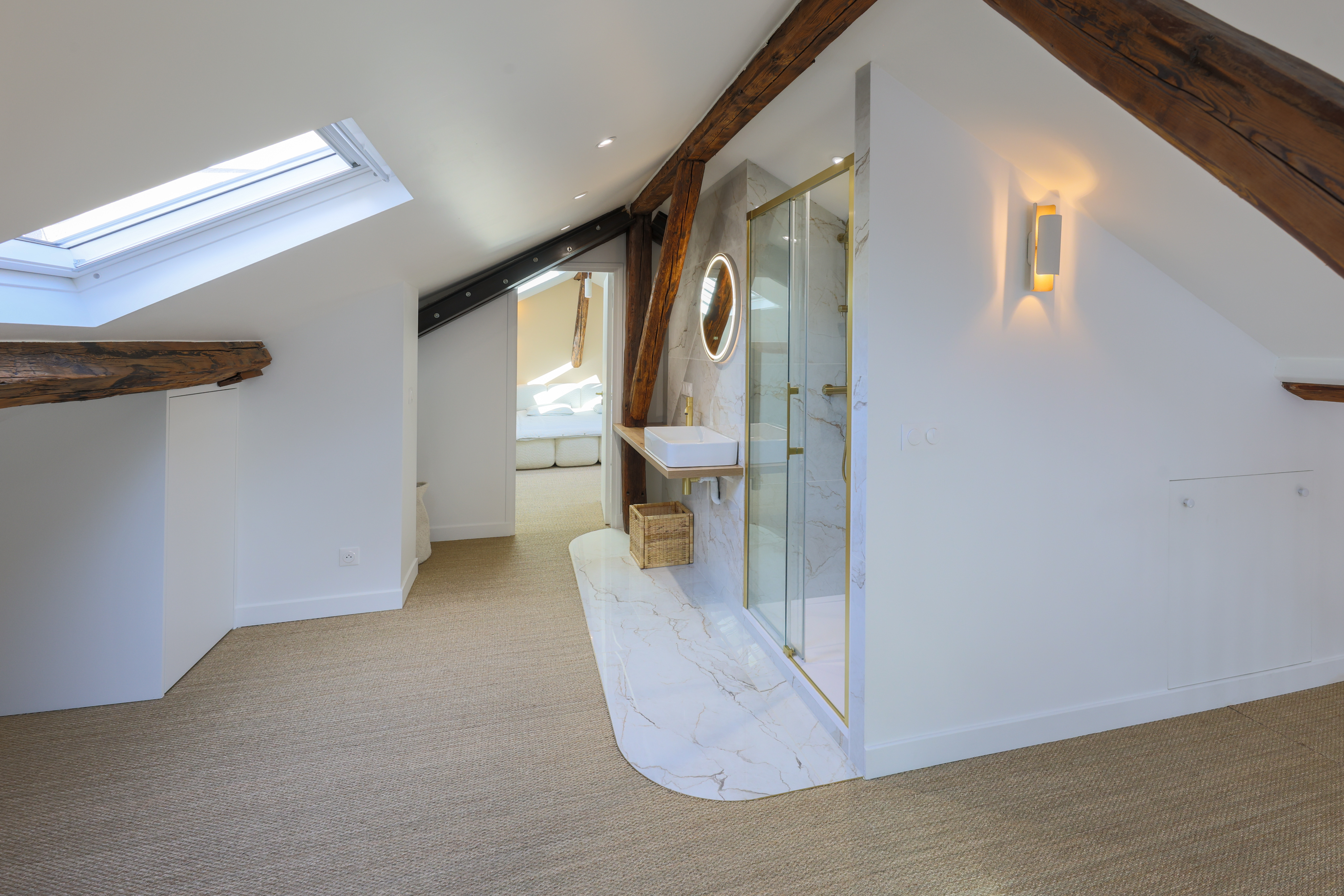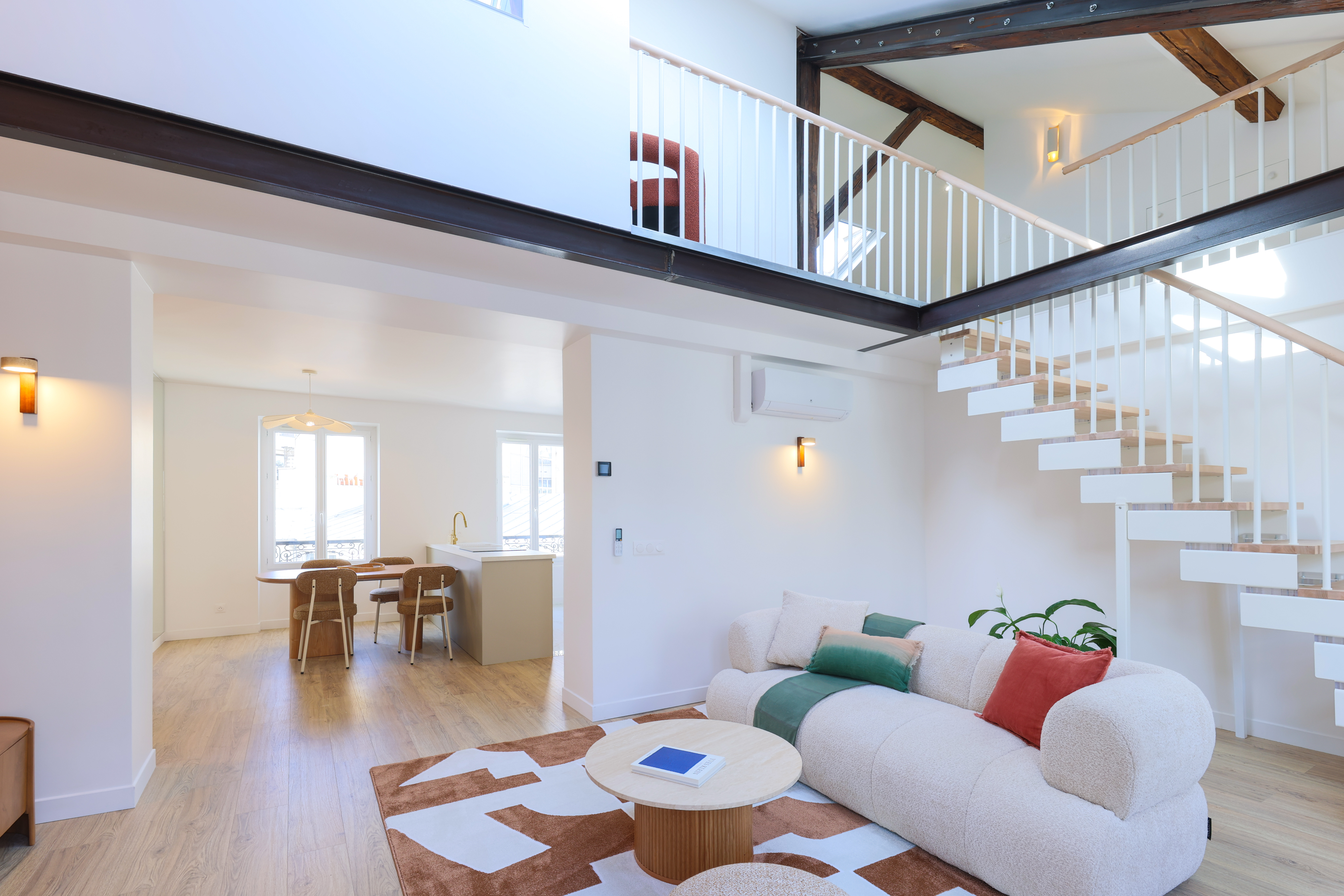 D’un appartement de 40 m², nous avons imaginé et conçu un duplex de près de 100 m² grâce à l’aménagement complet des combles. Une transformation en profondeur, pensée pour offrir de nouveaux volumes, plus de lumière et une véritable sensation d’espace
